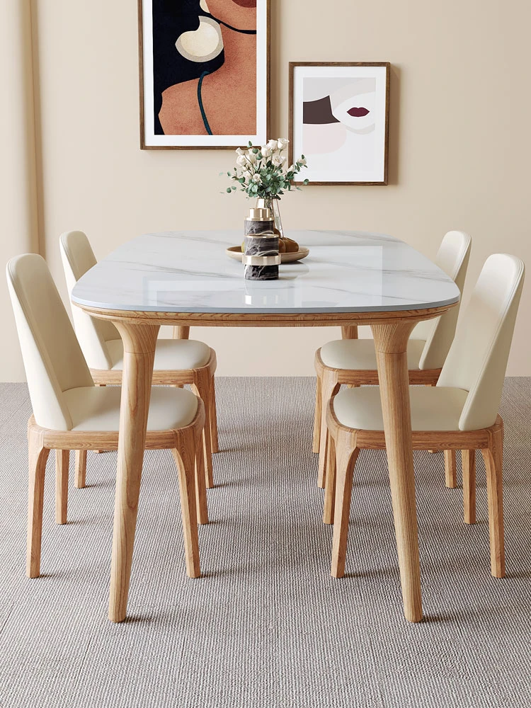 北欧スタイルの実木アッシュウッド&セラミック天板ダイニングテーブル - 現代的でシンプルなデザイン、小さな空間にぴったりの長方形テーブルセット!