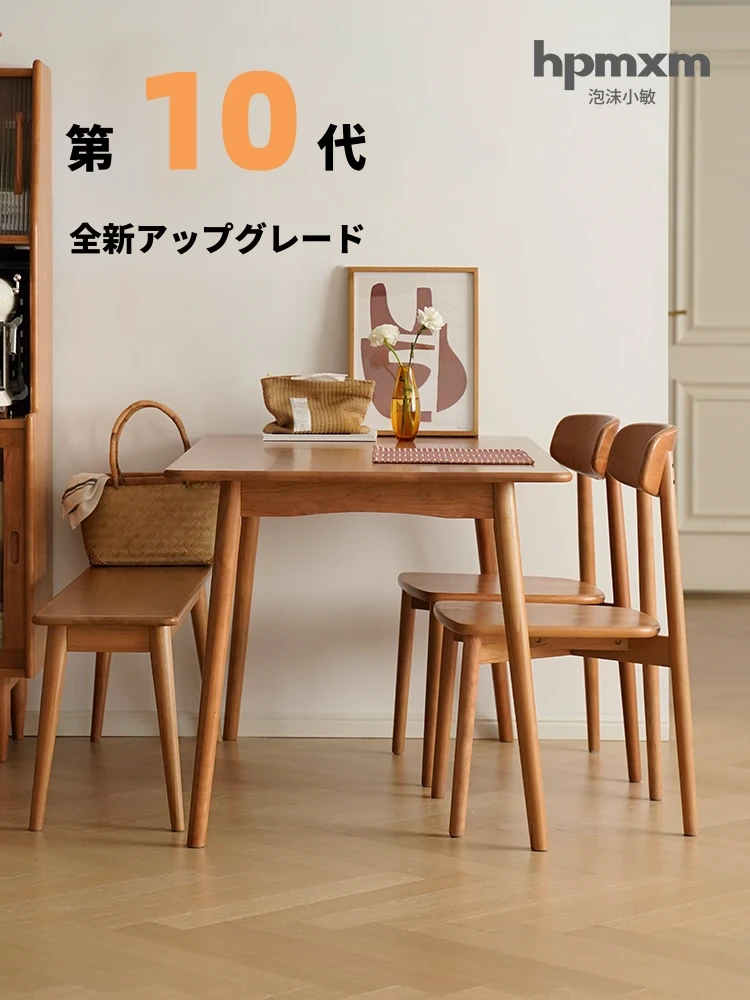 北欧スタイルの全無垢材ダイニングセット - 小スペースにもぴったり!シンプルで美しい桜の木を使用した日式家具