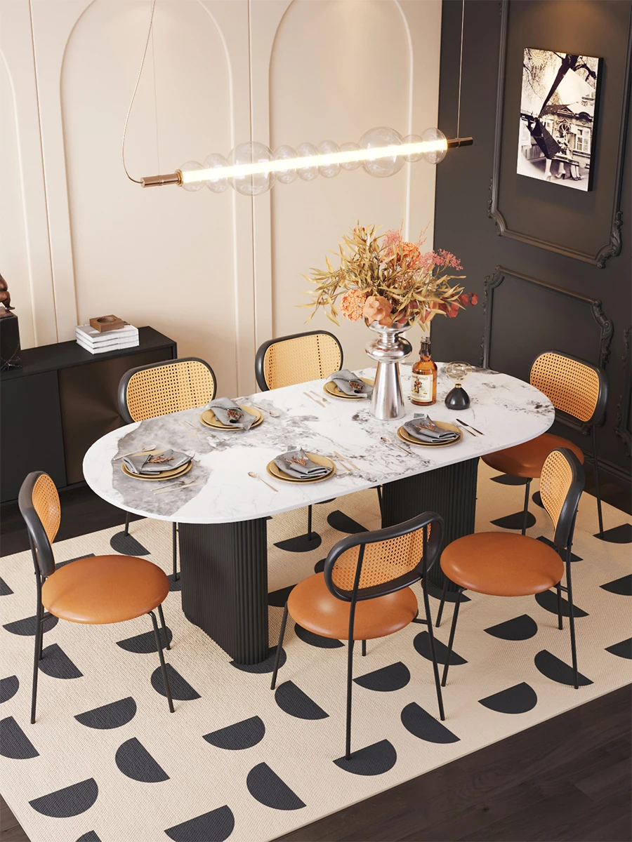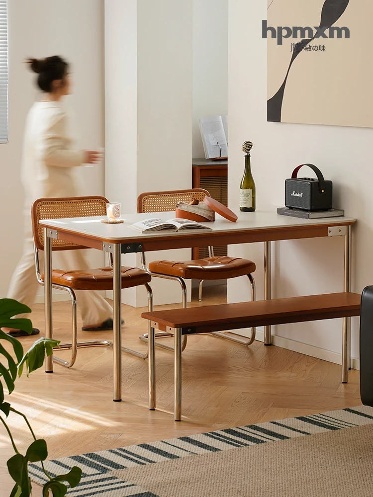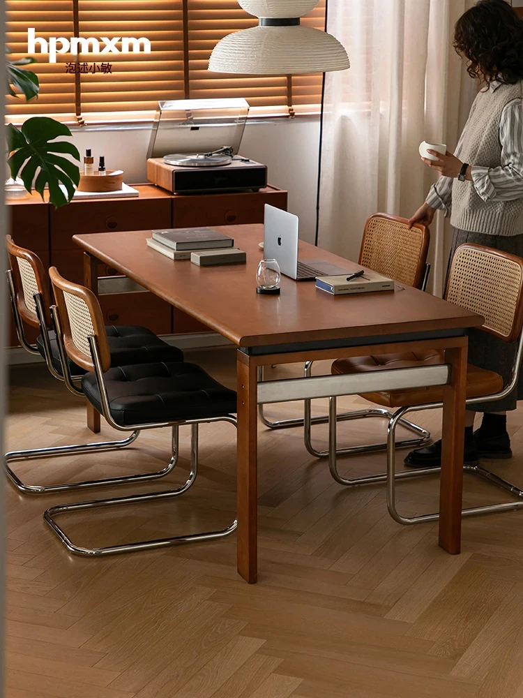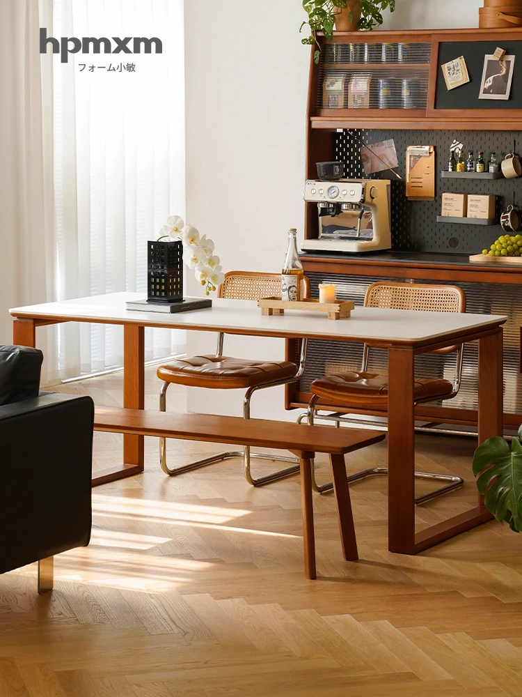 レトロスタイルの高品質泡沫小敏家具、北欧ヴィンテージ岩板ダイニングテーブル&チェアセット-天然木製大板テーブル&ワークデスク、洗練されたデザインでお部屋にエレガントな雰囲気を演出!