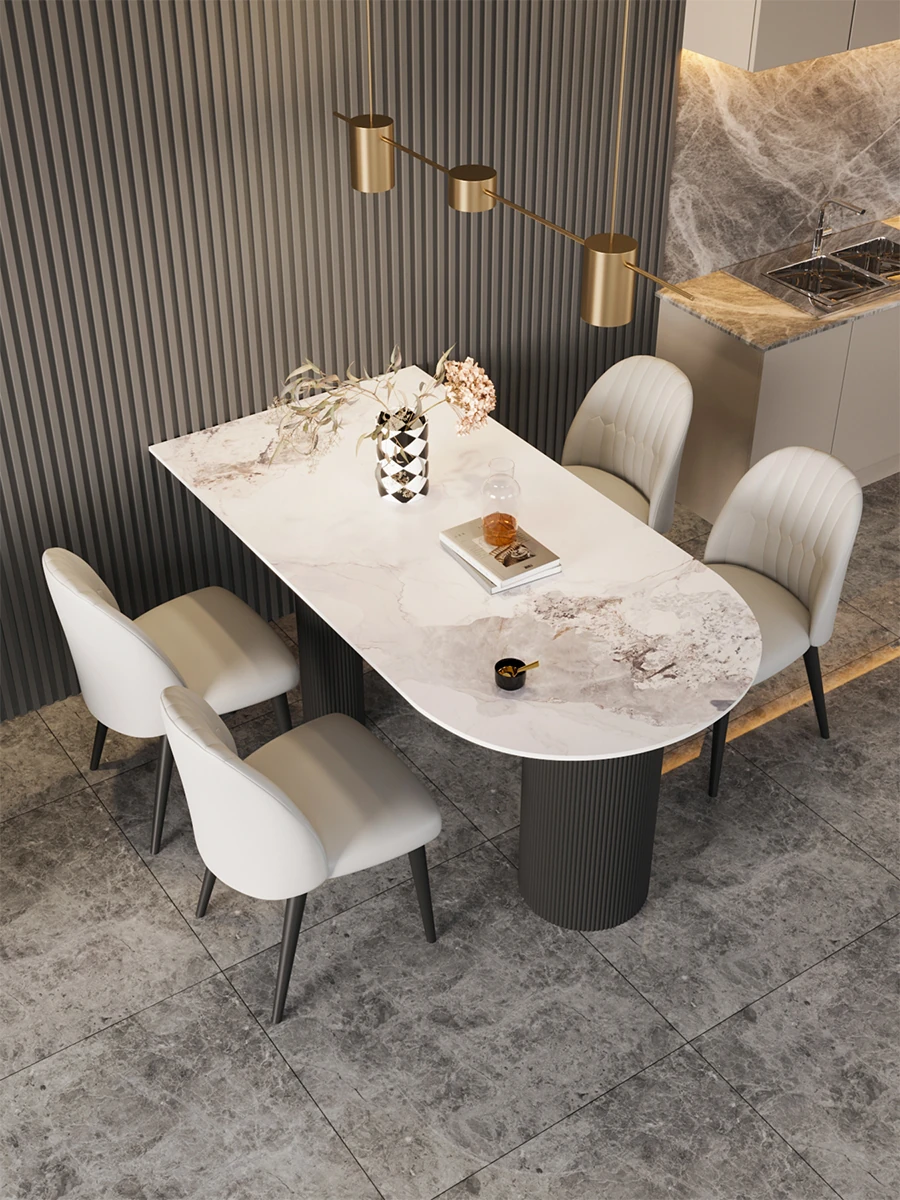 壁際に配置可能!組み合わせ式ハーフムーンダイニングテーブル-モダンでラグジュアリーなデザインの岩板