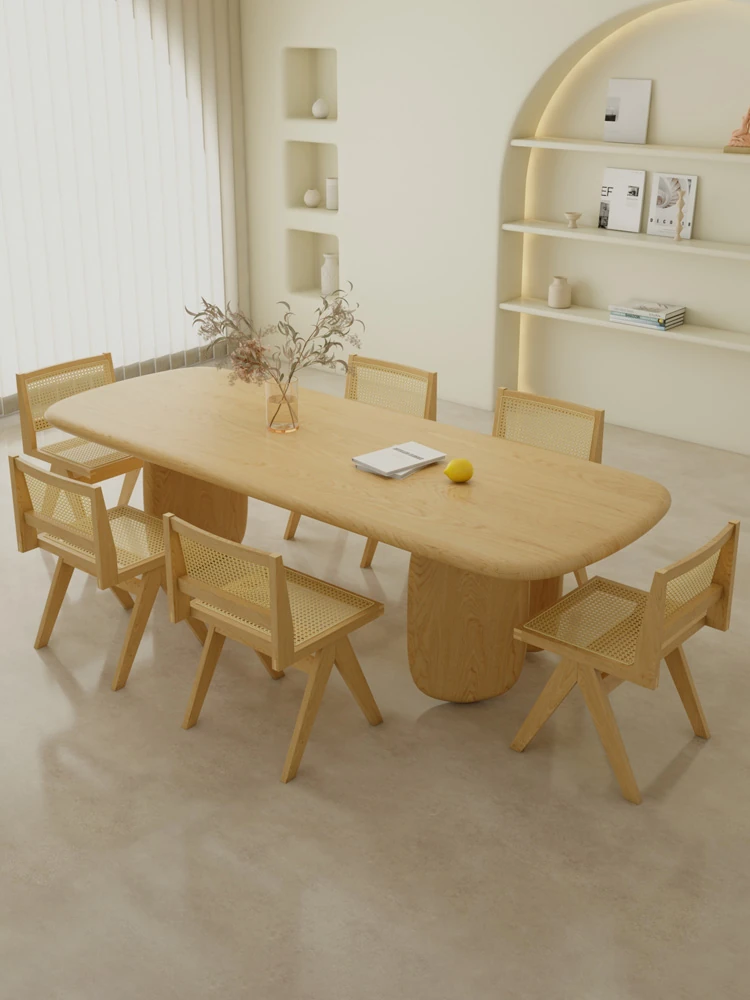 本格和風!上質無垢材で作られたリビングでも使える白ラタンウッド製長方形ダイニングセット。機能性と美しさを備えたナチュラルな和の侘寂スタイルが、心地よい時間をお届けします。