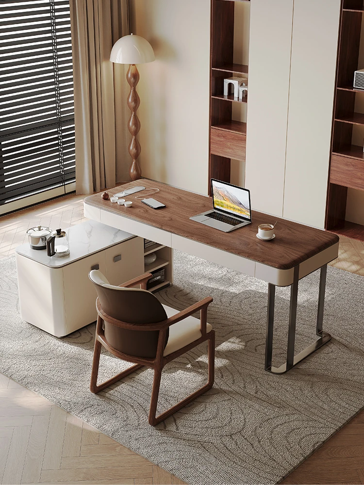 多機能!書斎コーナー用ティーテーブル兼用デスク - おしゃれなサイドキャビネット付きの本格的な木製コンピューターデスク。オフィスや自宅で使える、快適な作業スペースを提供します。