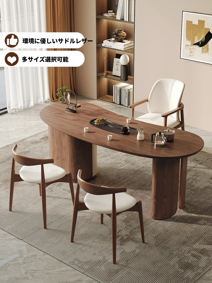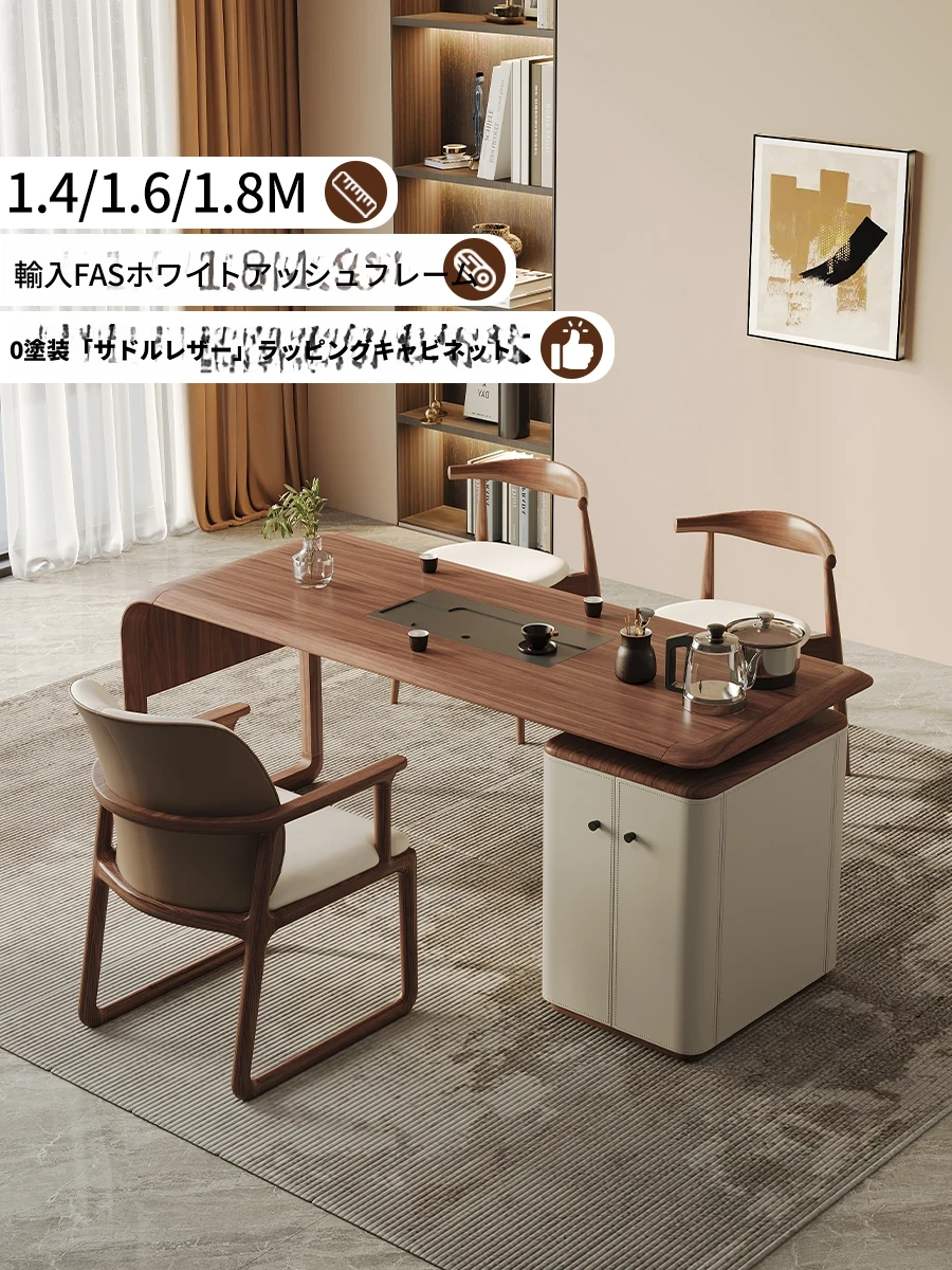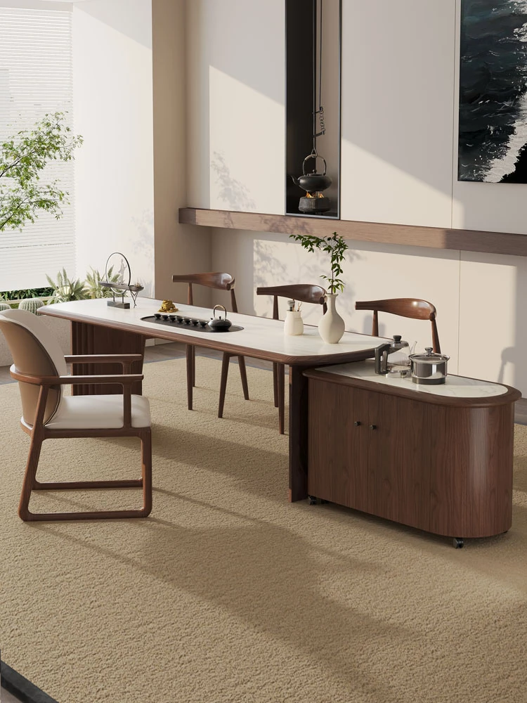 無垢材の岩板茶卓と一体化した焼水ポット、埋め込み式新中式サイドティーキャビネット付き!オフィスやリビングに最適な洗練されたデザインで、心地よいひと時を演出します。