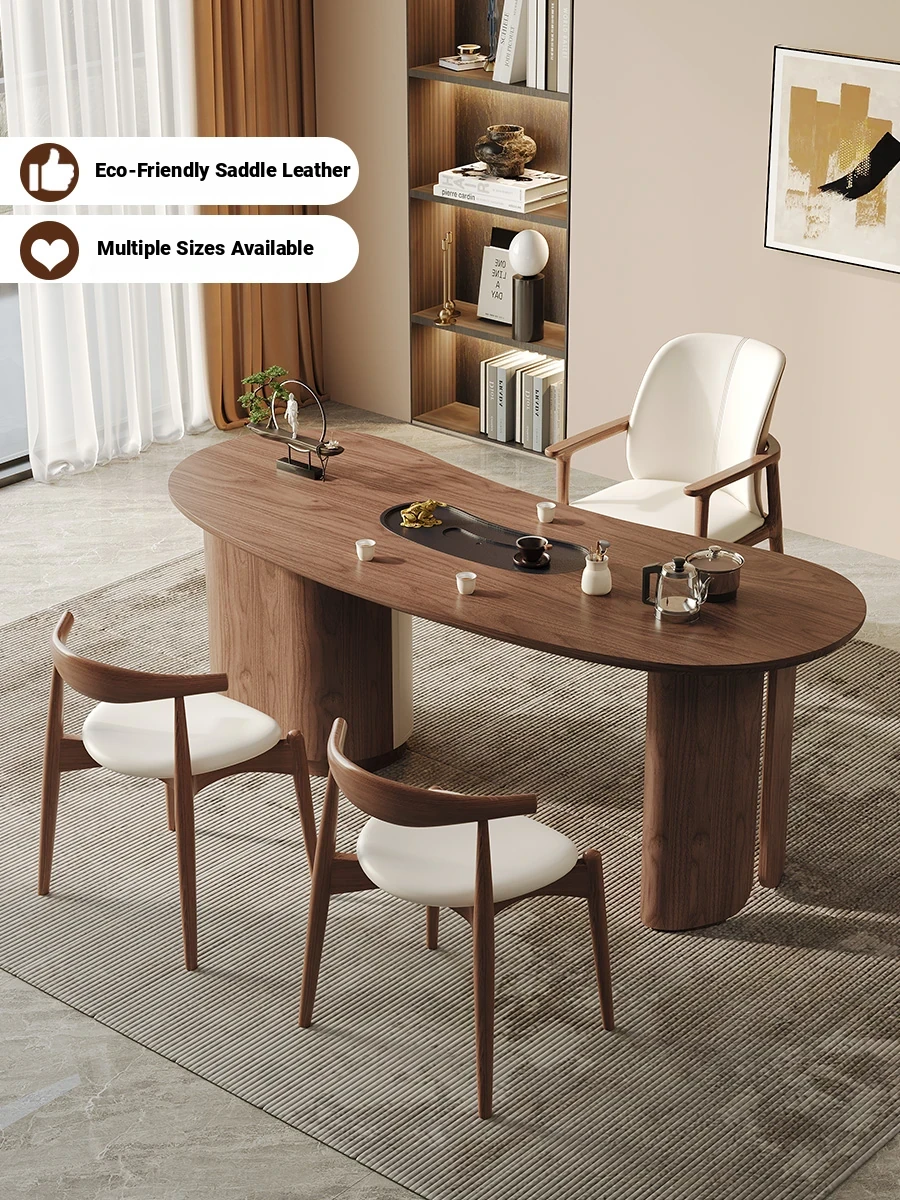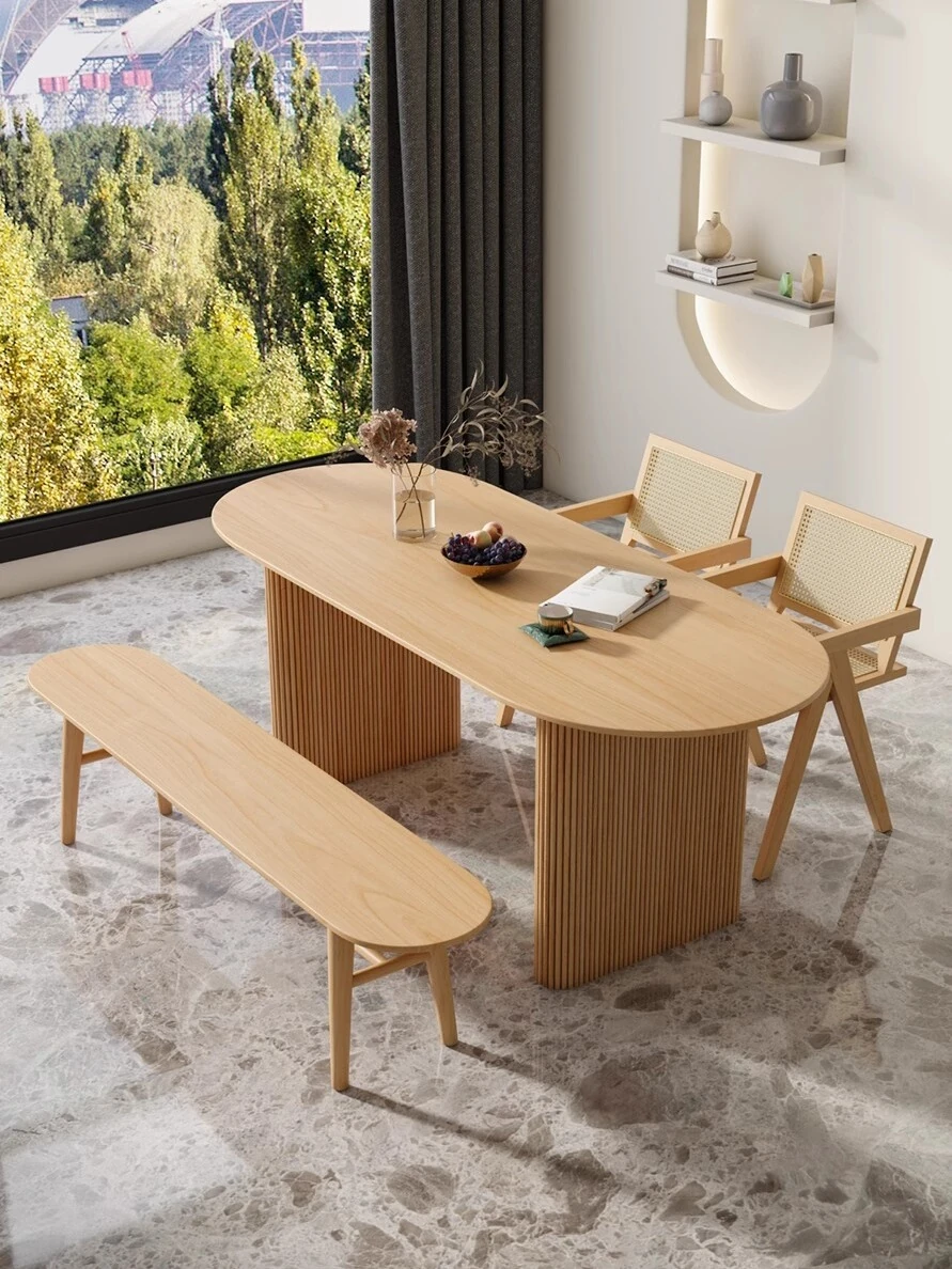 Japanese-Style Solid Wood Dining Table Set - Oval Shabby Chic Design for Cozy Small Homes, Balcony, Rustic Book & Tea Table, Versatile Workspace Desk