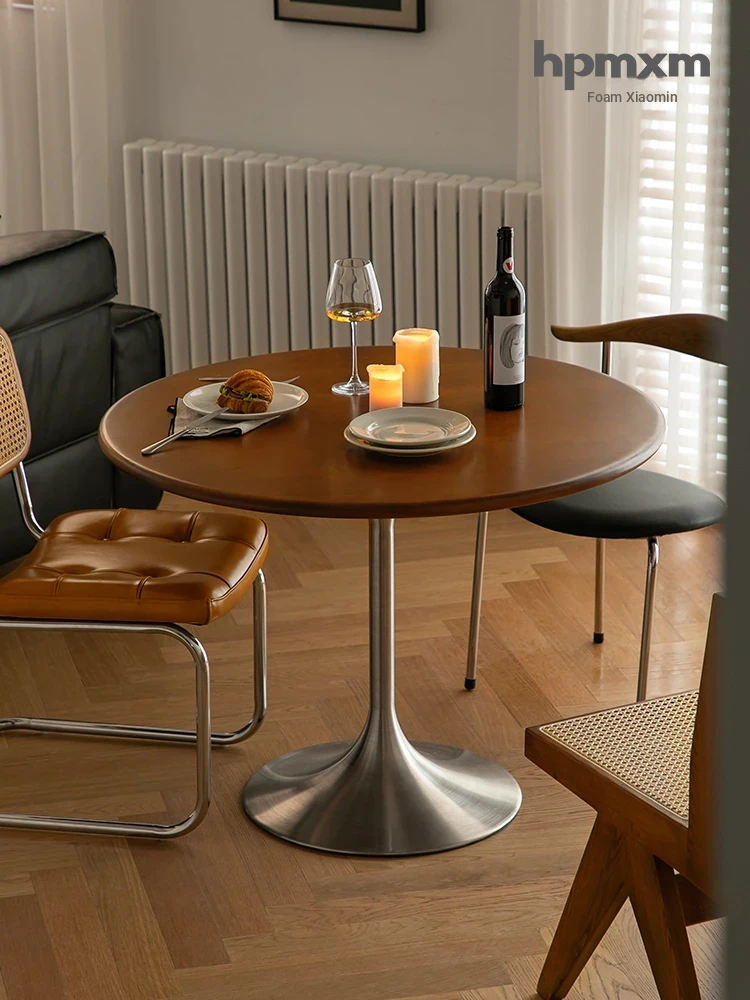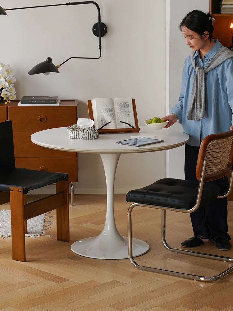 Nordic Tulip Round Dining Table Set - Vintage Style, Space-Saving Design for Small Apartments, with Durable Sintered Stone Surface and Cushioned Chairs