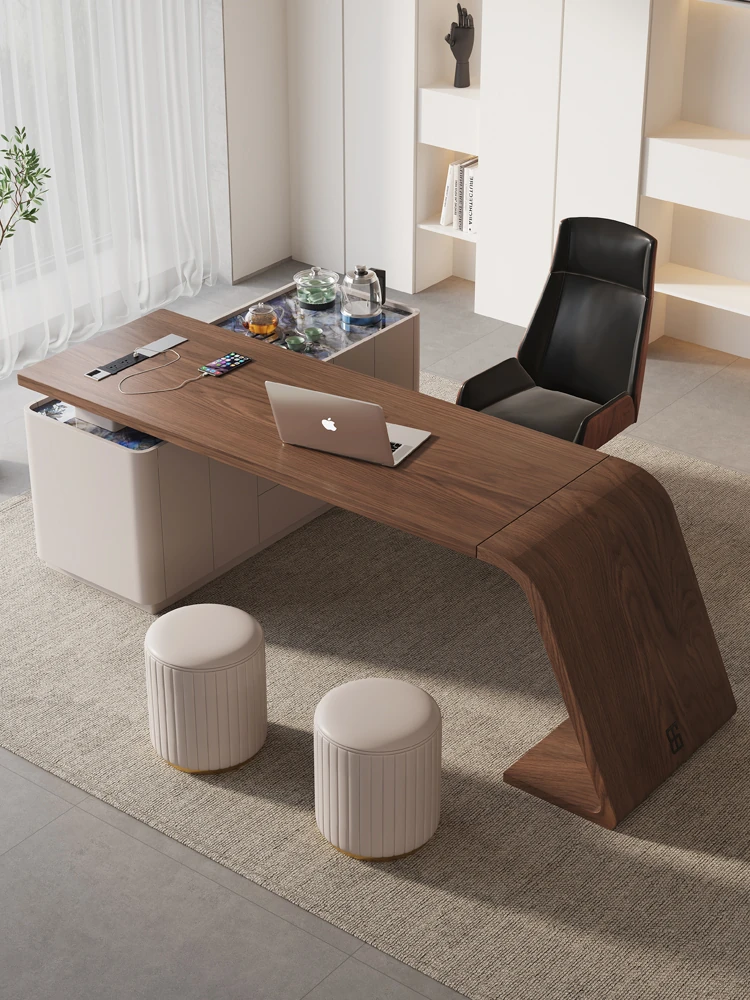 Italian Minimalist Corner Solid Wood Desk - Versatile Office and Tea Table with Acrylic Finish for Bosses - Perfect for Work and Relaxation