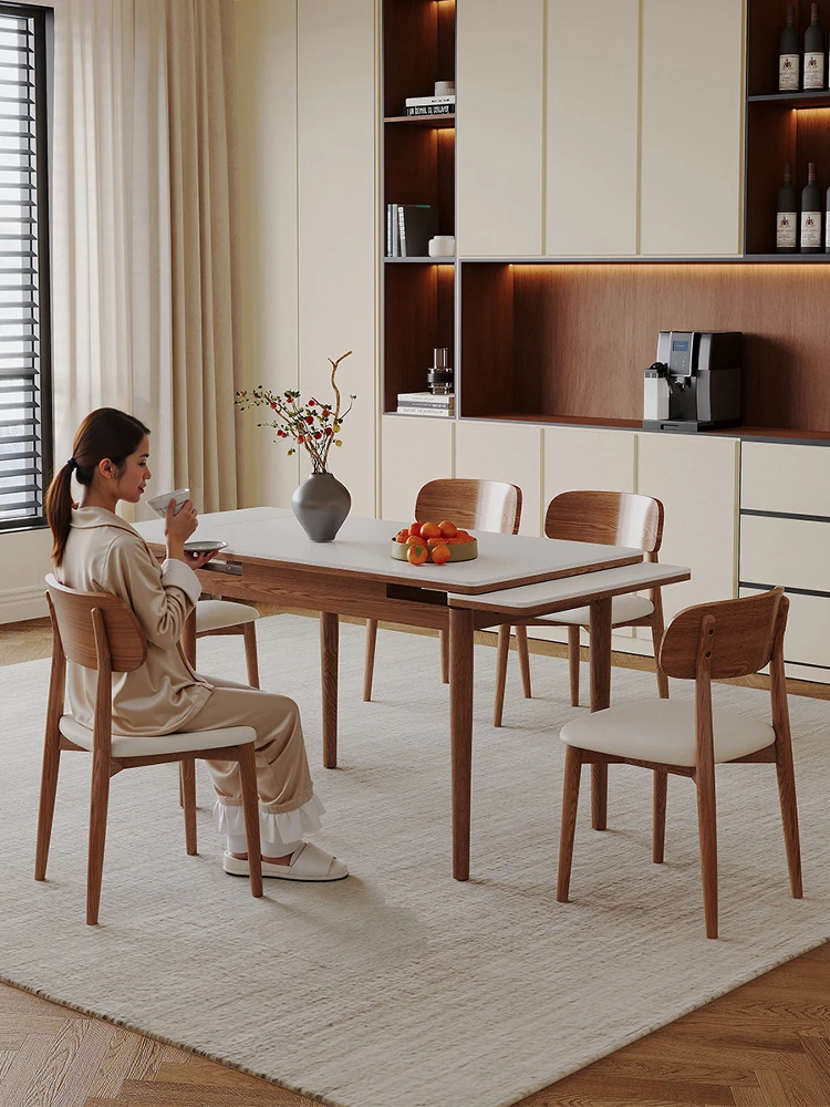 Modern Minimalist Solid Wood Dining Table and Chair Set for Small Spaces - Rectangular Expandable Dining Table, 2025 New Arrival