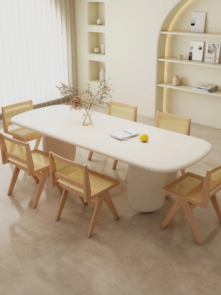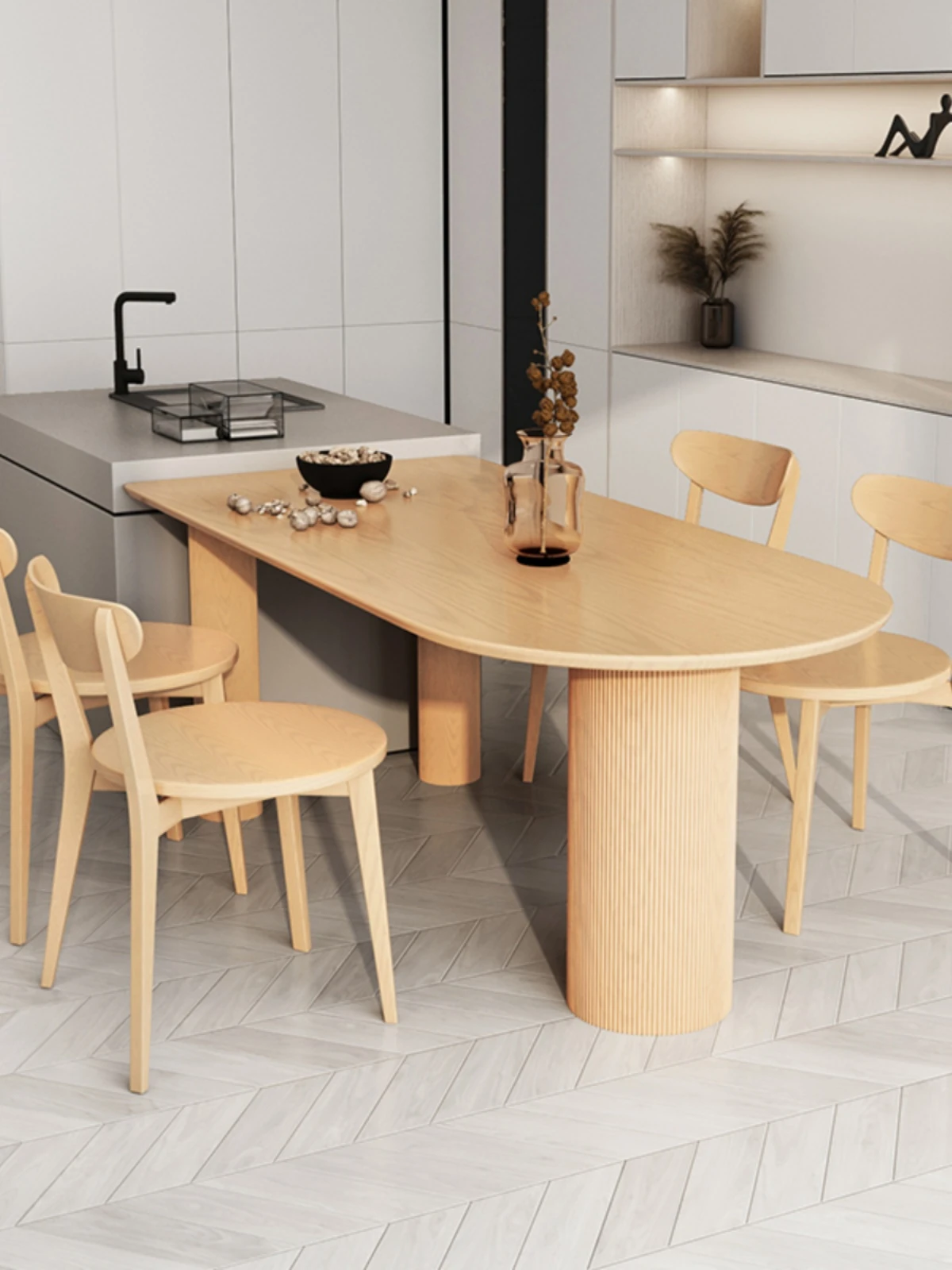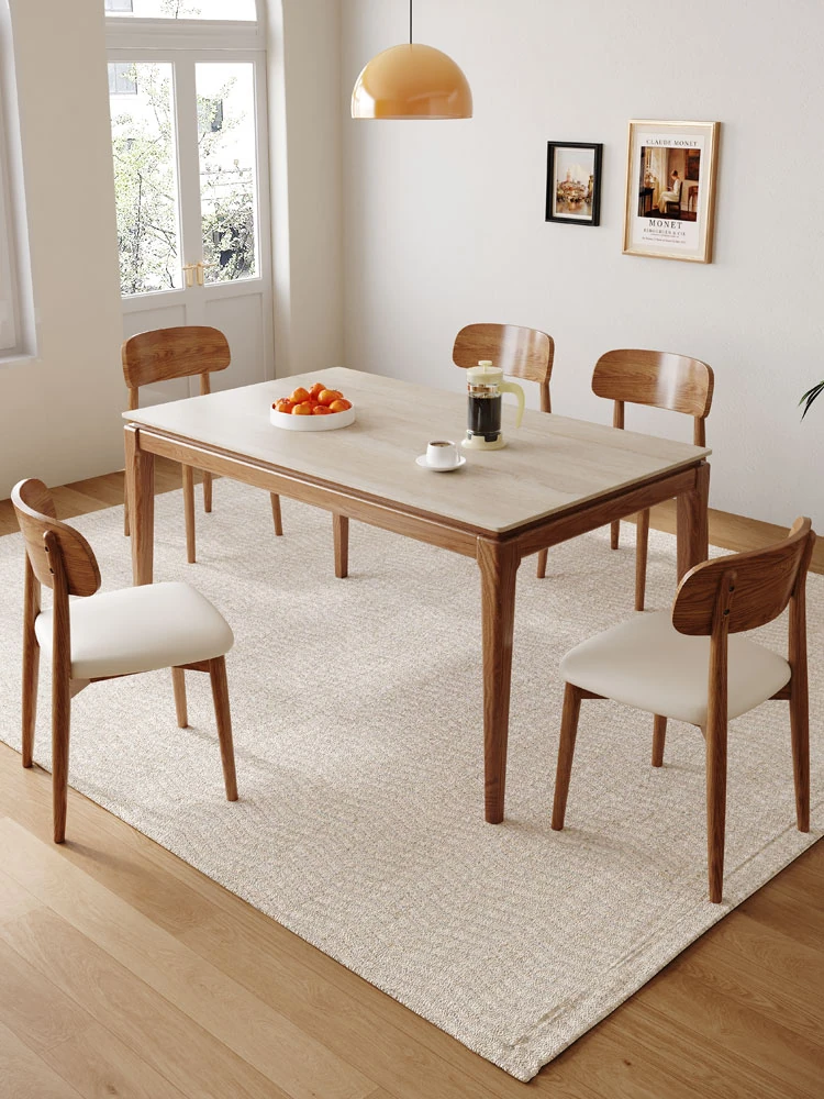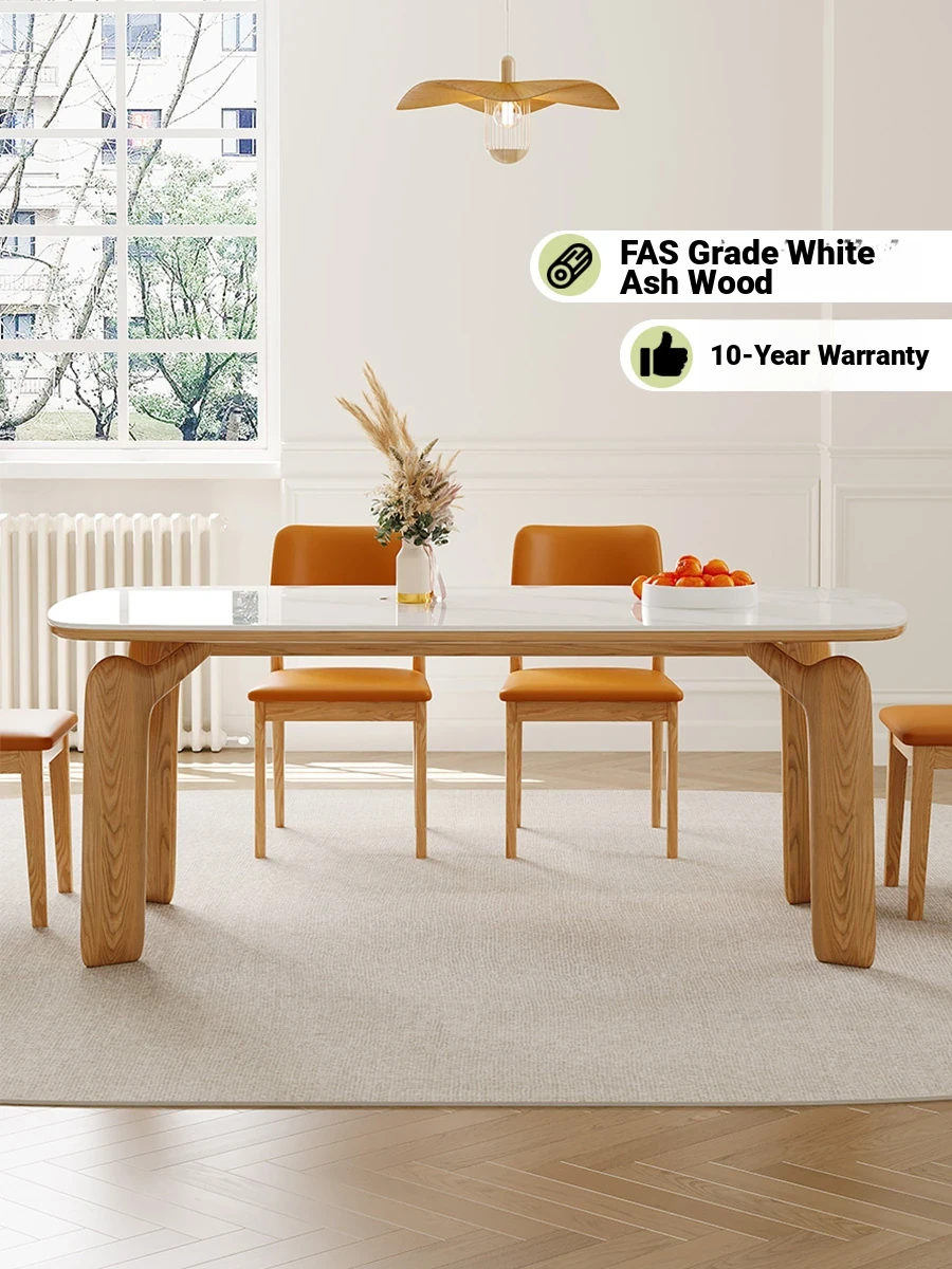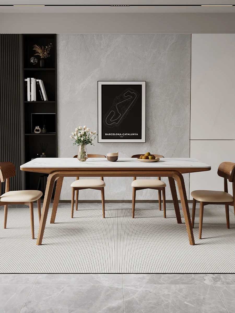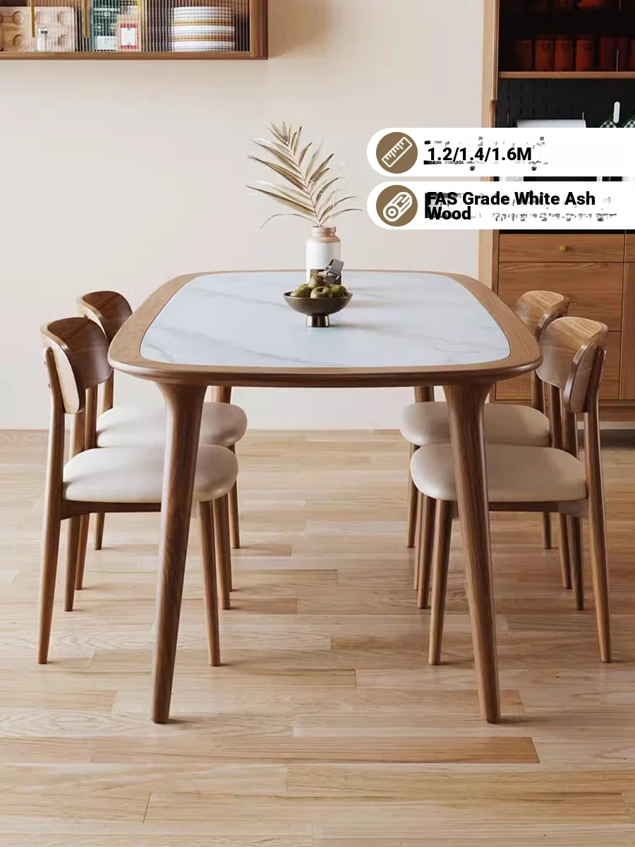 Nordic Solid Wood Dining Table – Modern Minimalist Design with Ash Wood and Rock Board Surface, Ideal for Small Homes, Rectangular Sailboat Style for Chic Home Dining