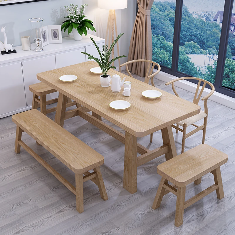 Japanese Solid Wood Dining and Study Table Set - Versatile Home Office Desk Combo with Durable Ash Wood, Perfect for Living Room and Workspace