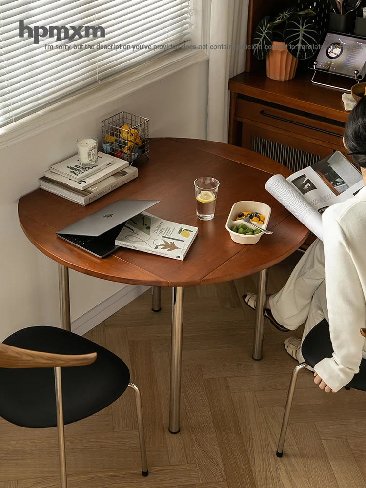 Foam XiaoMin Scandinavian Vintage Foldable Round Table - Space-Saving Solid Wood Dining Set for Small Homes, Convertible Square to Round Table with Chairs