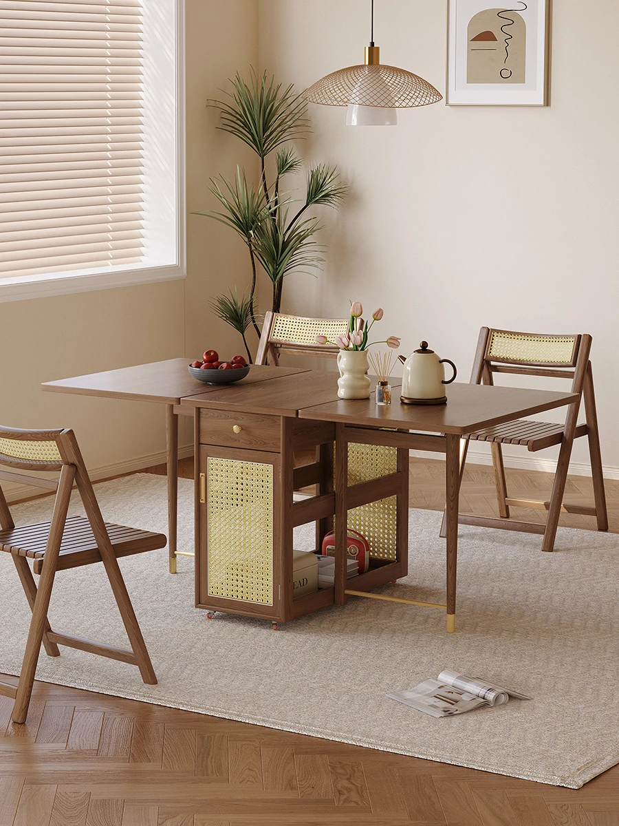 Versatile Space-saving Dining Set: Foldable Solid Wood Dining Table with Built-in Sideboard and Storage - Perfect for Compact Living Spaces
