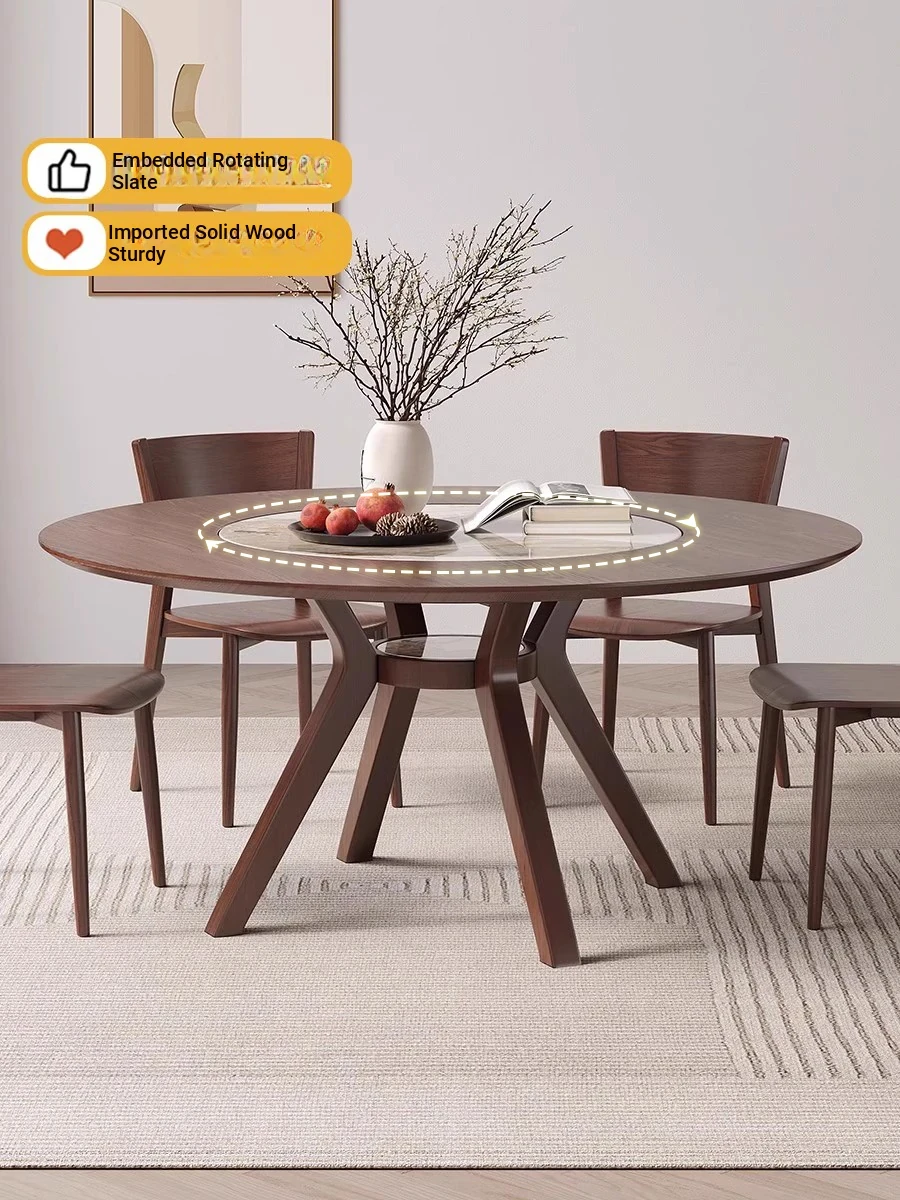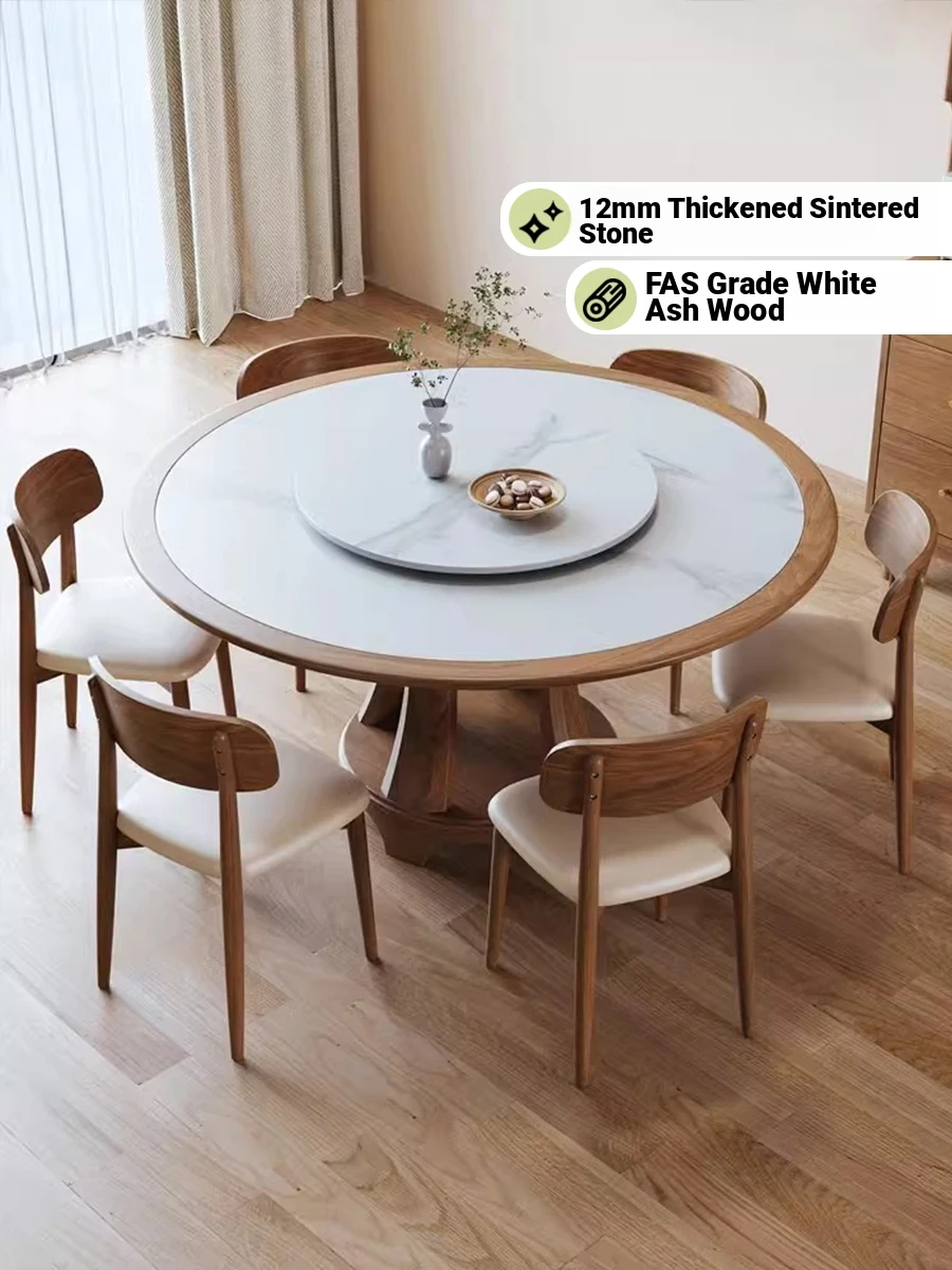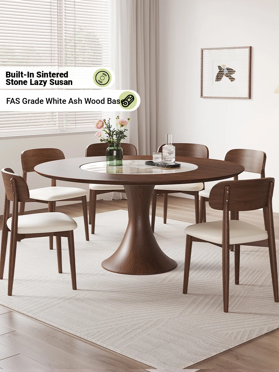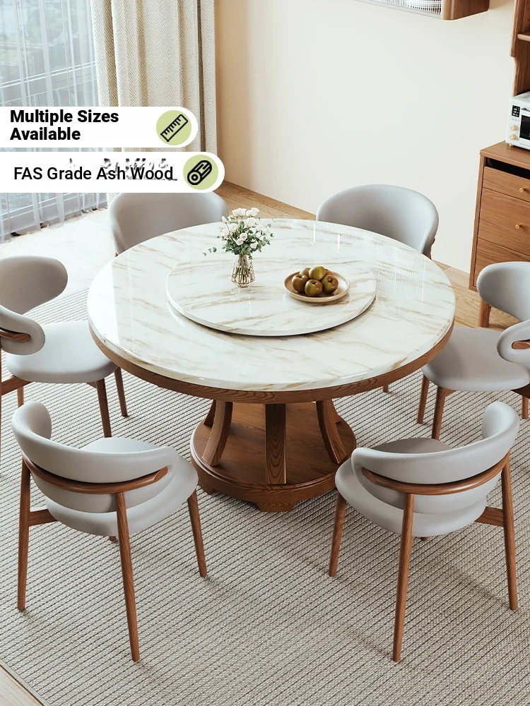 Modern Luxurious Round Dining Table Set - Solid Wood Ash Table with Lazy Susan, Perfect for Elegant Home Dining