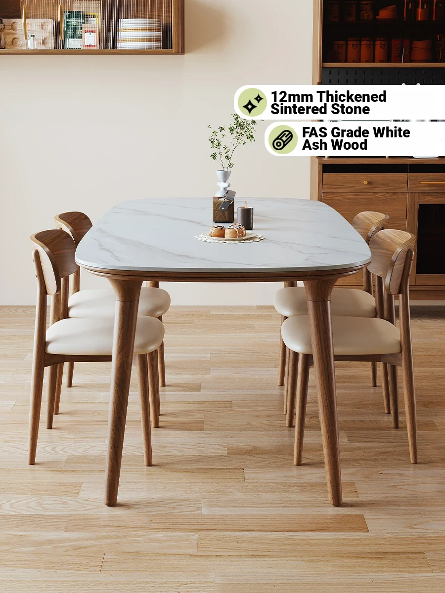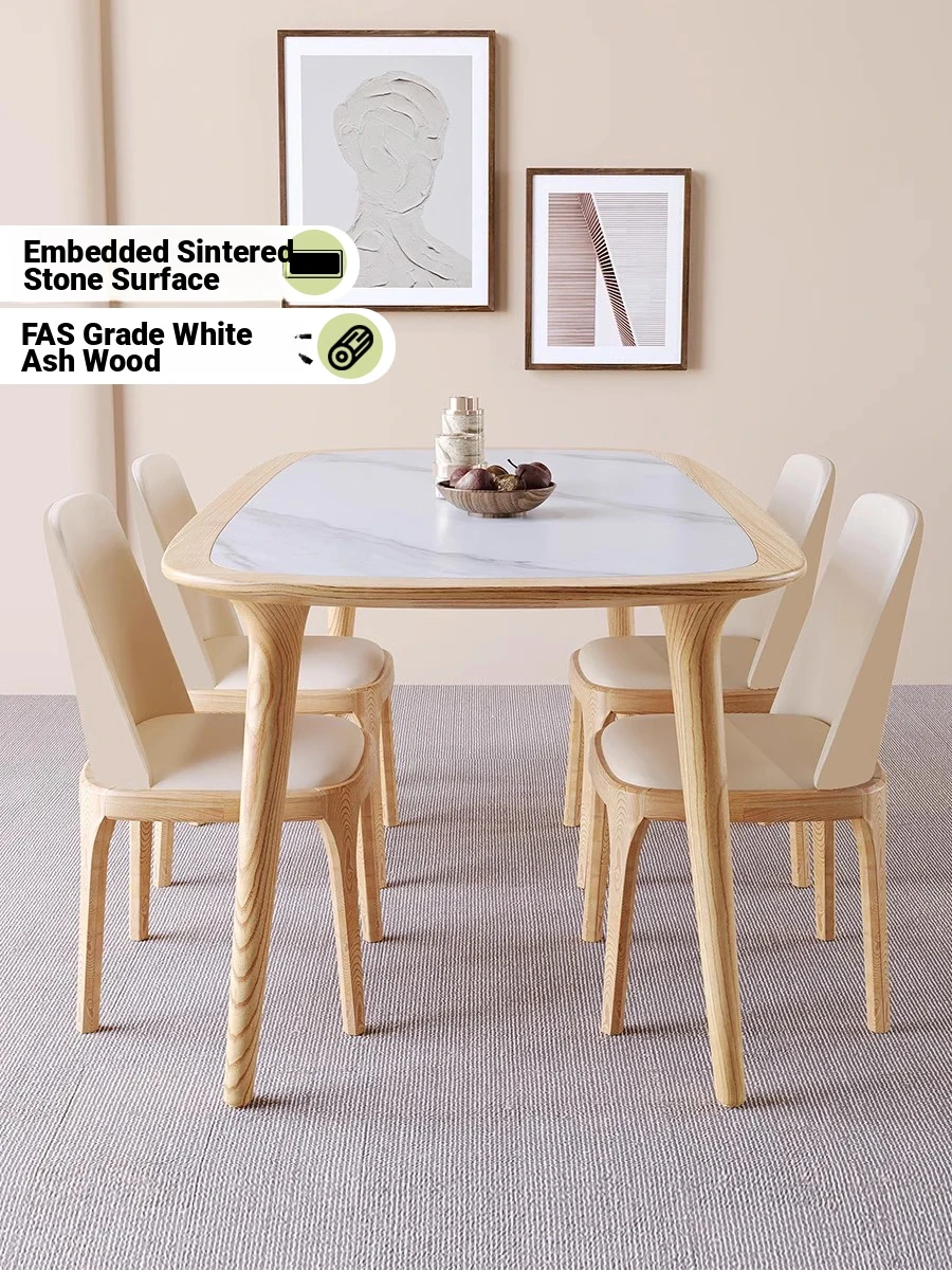 Modern Luxury Dining Table Set - Elegant Natural Ash Wood with Premium Stone Top, Perfect for Compact Spaces