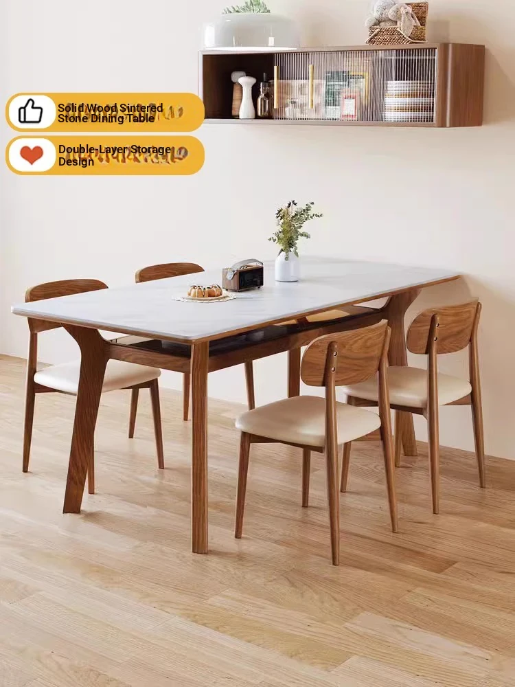 Modern Chinese Style Solid Wood Dining Table Set with Double-Layer Marble Top – Nordic Minimalist Design in White Ash for Home Use, Featuring Durable and Elegant Dining Chairs