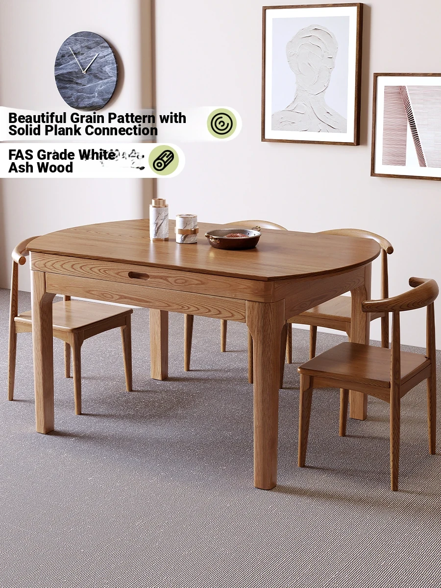 Solid Wood Extendable Dining Table - Convertible Square & Round Design for Small Spaces, Ash Wood Folding Table, Modern Multifunctional Dining Solution