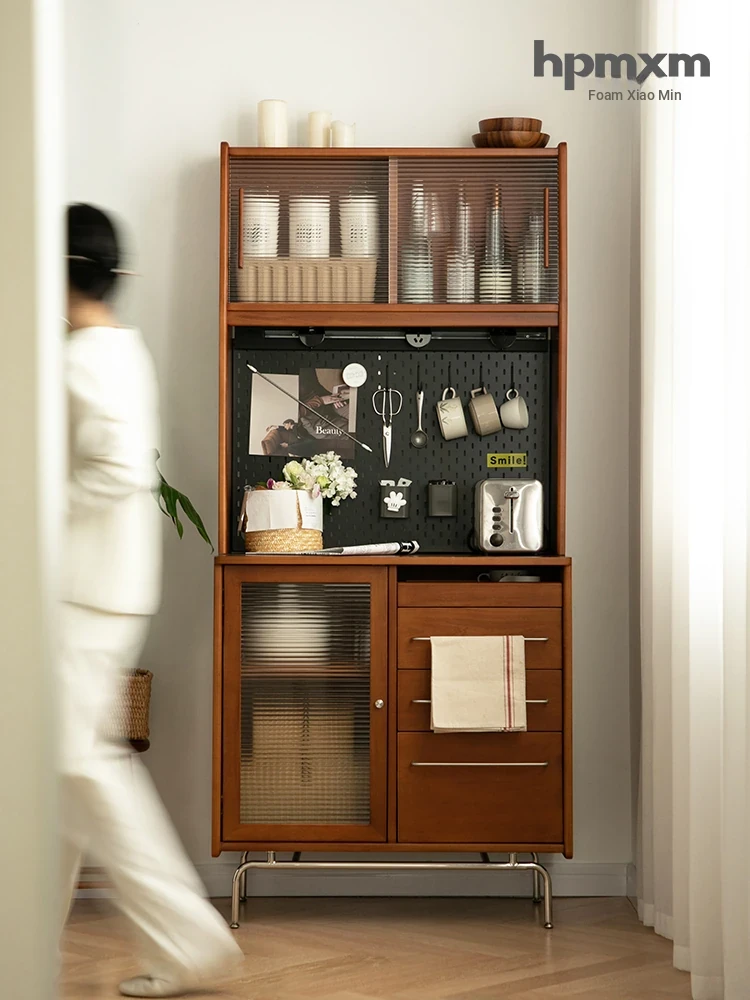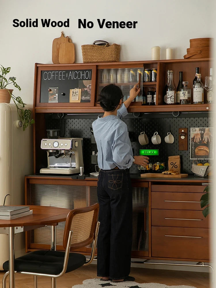 Nordic Retro Solid Wood Sideboard & Storage Cabinet - Elegant Foam Xiaomin Furniture for Kitchen & Dining Room, Wall-Mounted High Cabinet with Wine Storage
