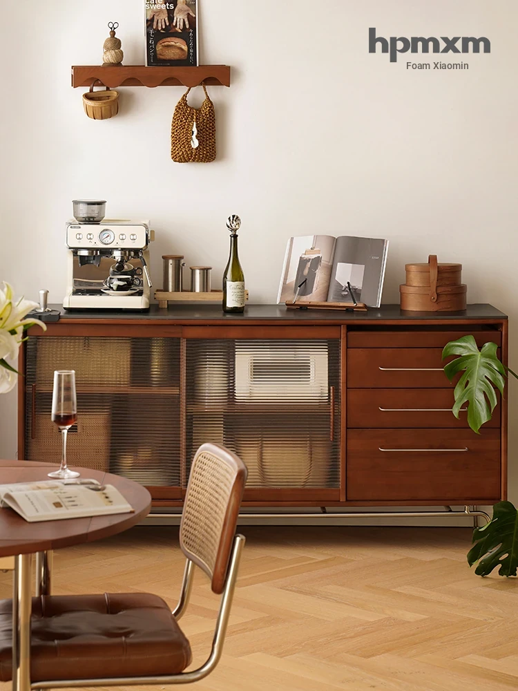 Nordic Solid Wood Sideboard with Retro Stone Top - Versatile Storage Cabinet for Dining Rooms and Kitchens, Perfect for Tea or Coffee Stations