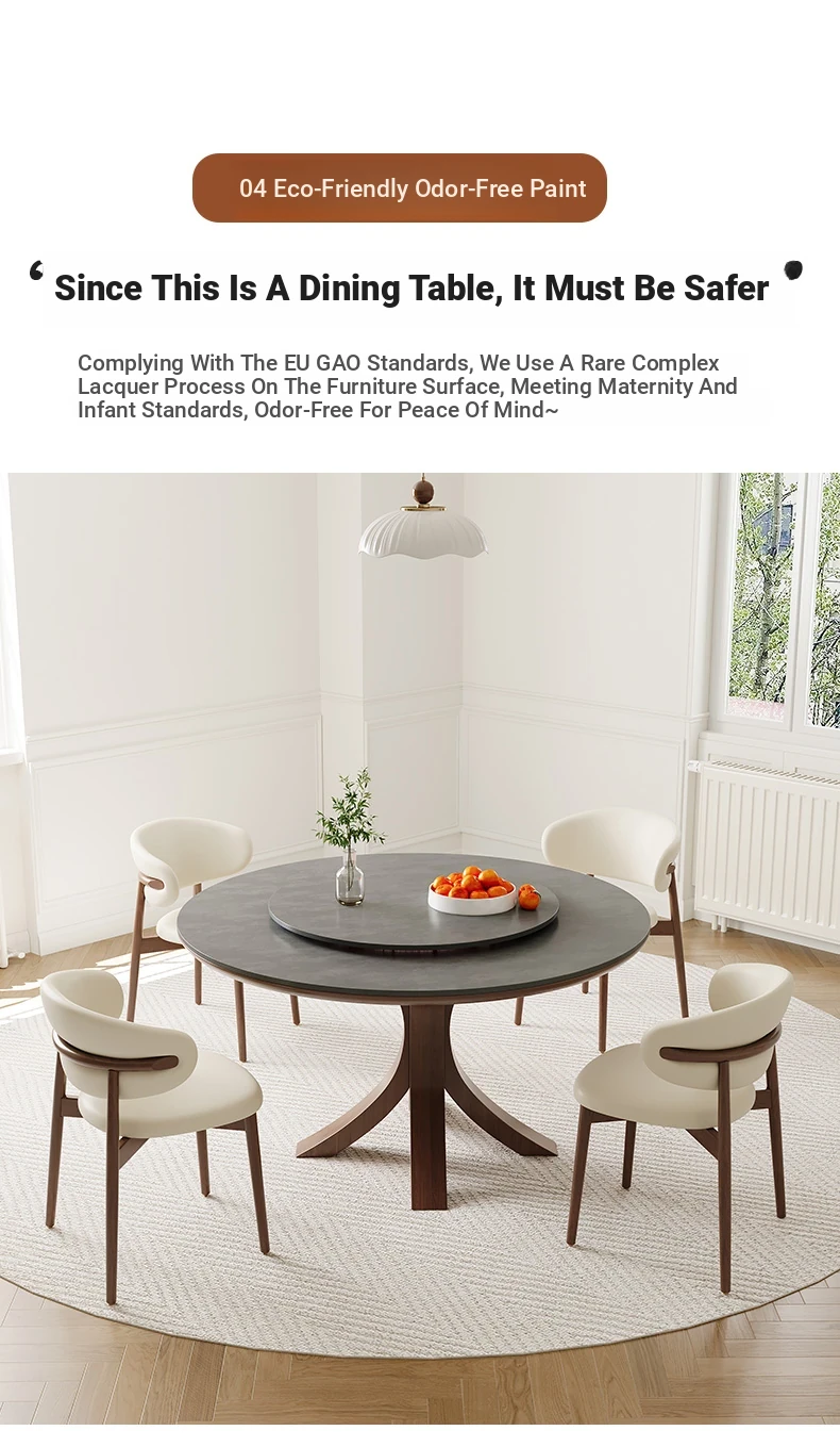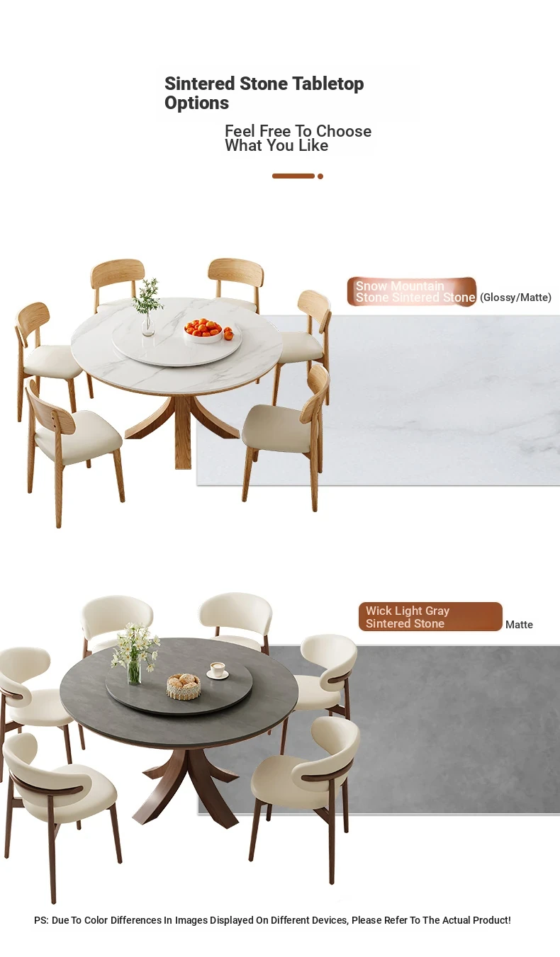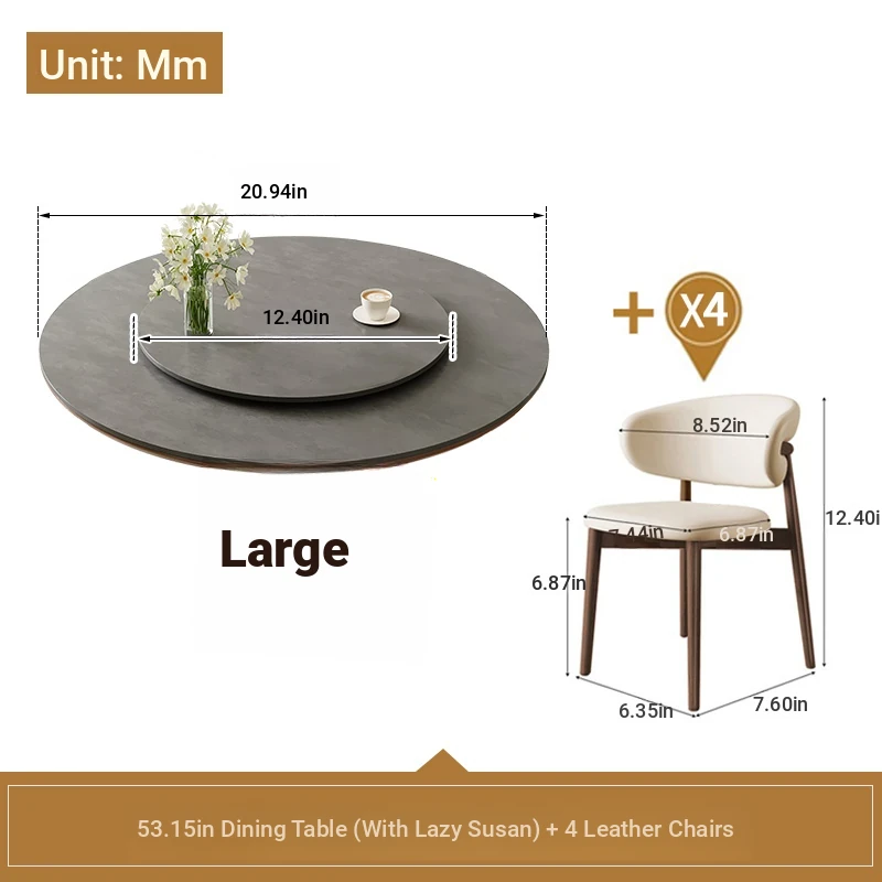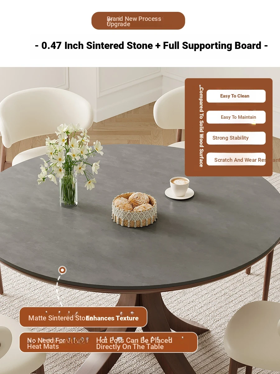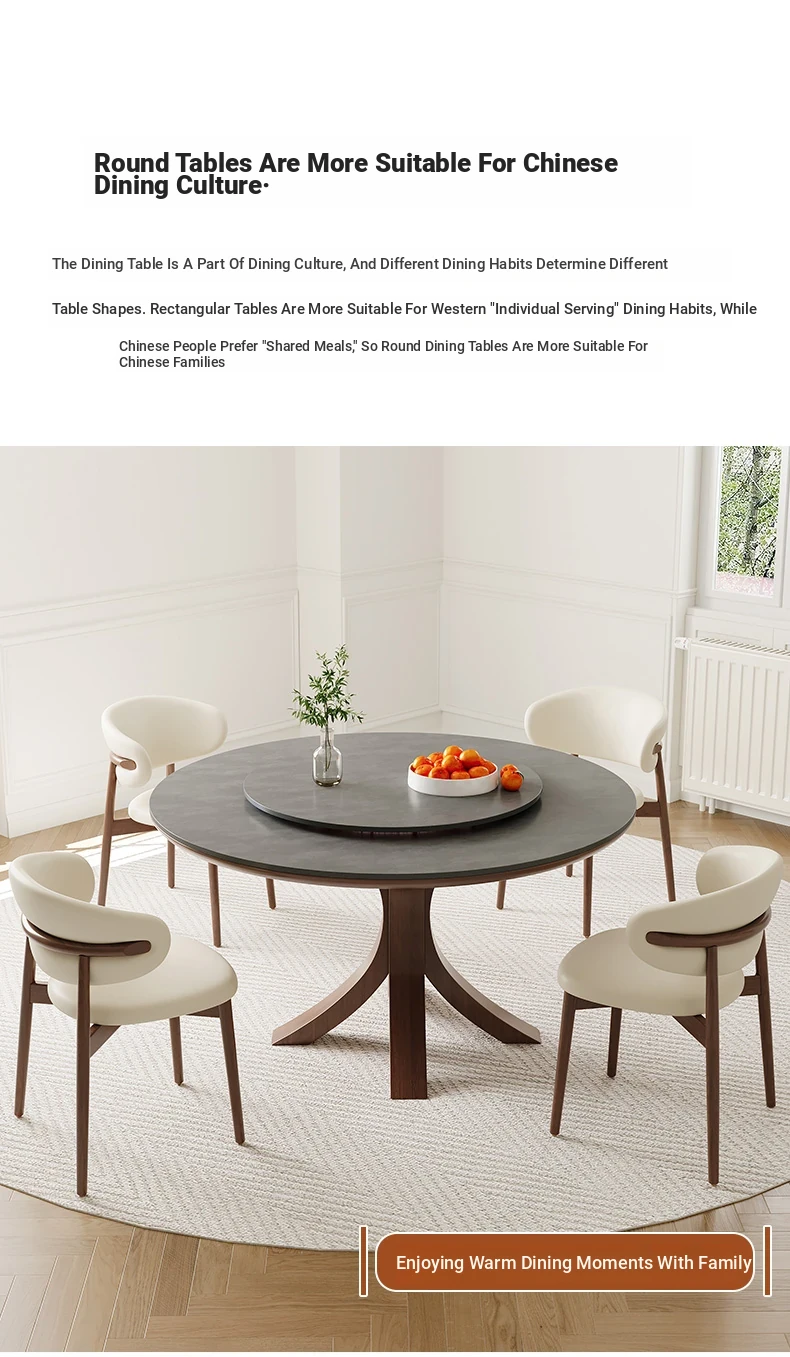 Ash Wood Solid Round Dining Table with Lazy Susan - Vintage Wabi-Sabi Style High-End Round Sintered Stone Table for Home with Full Support Base