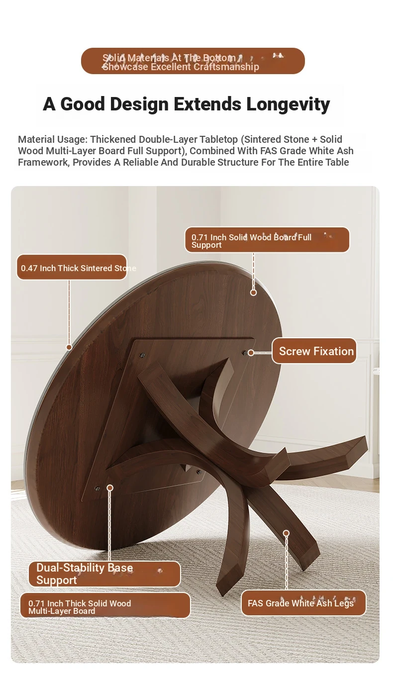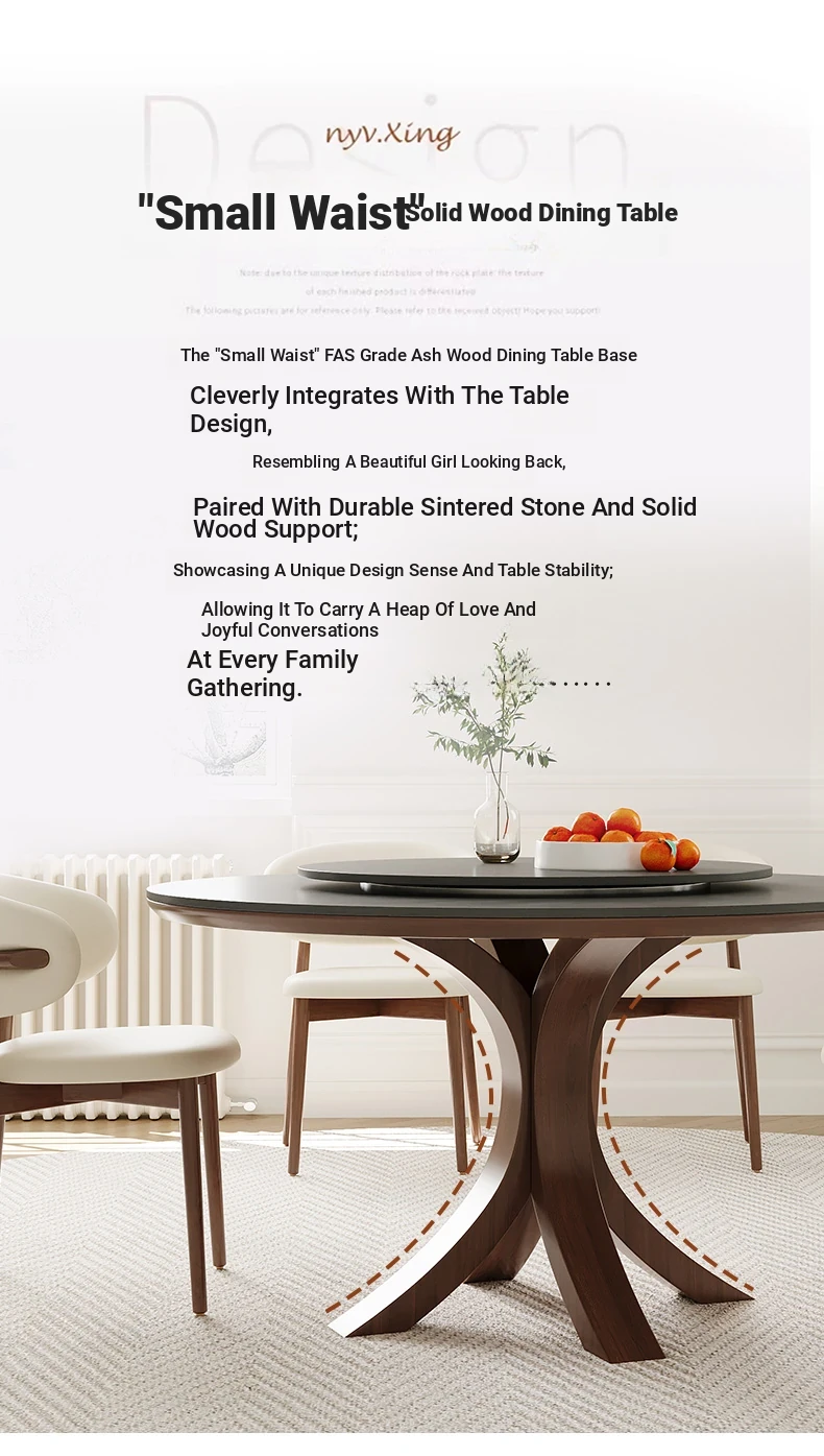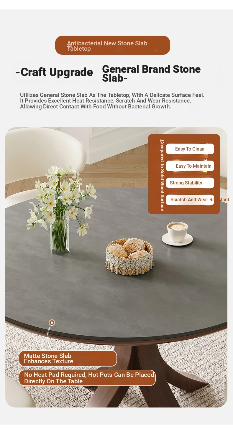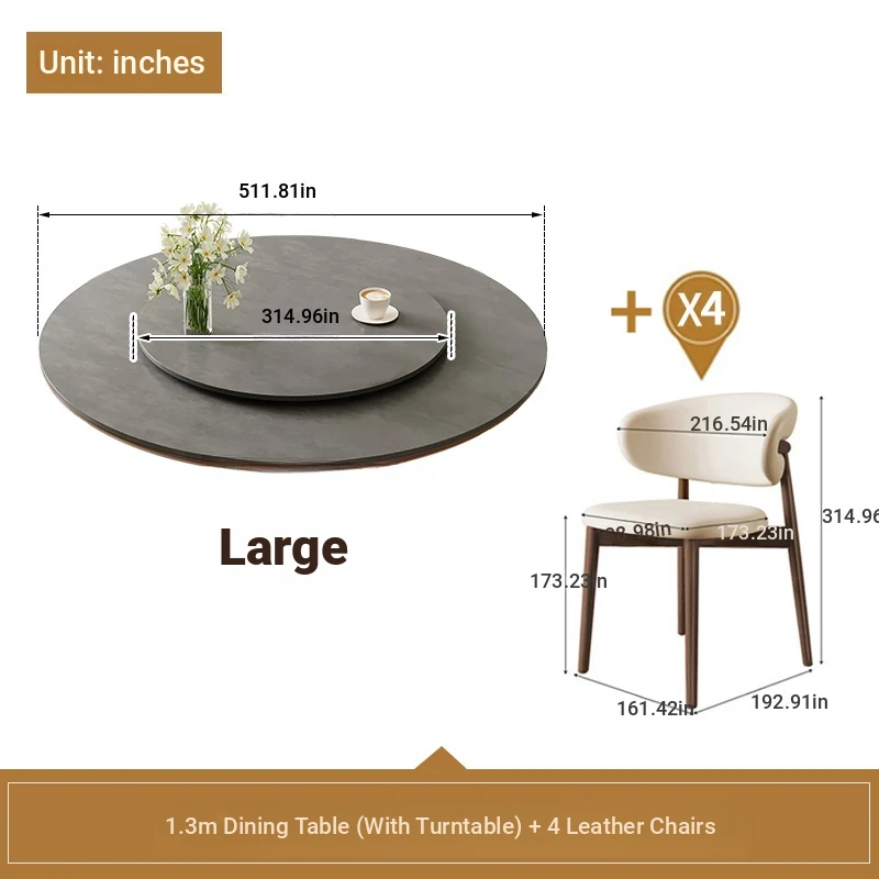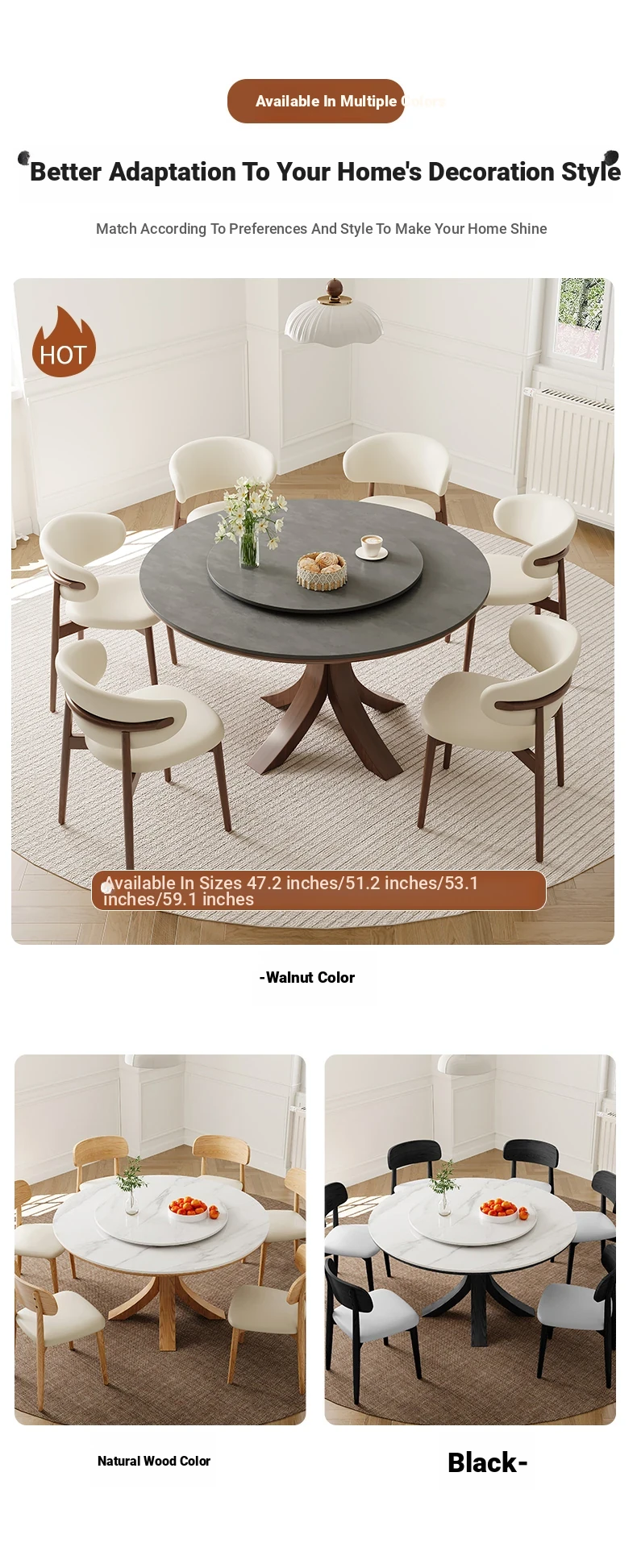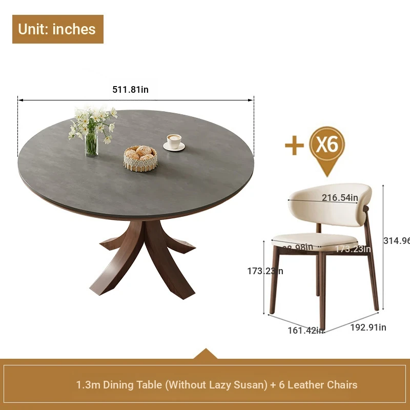 Ash Wood Solid Round Dining Table with Lazy Susan - Vintage Wabi-Sabi Style High-End Round Sintered Stone Table for Home with Full Support Base