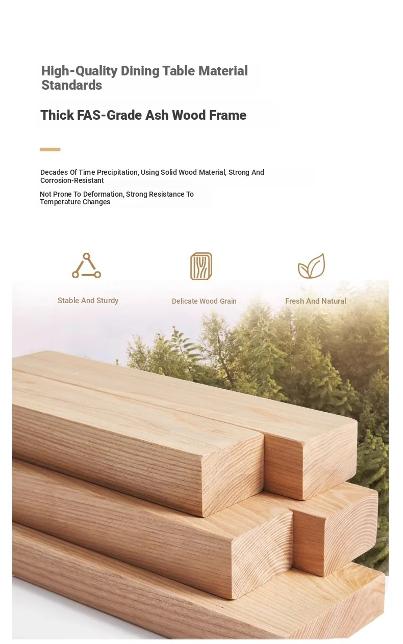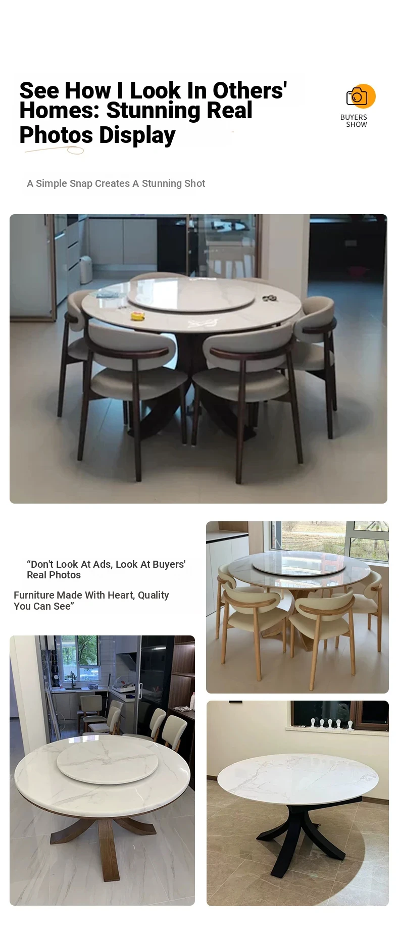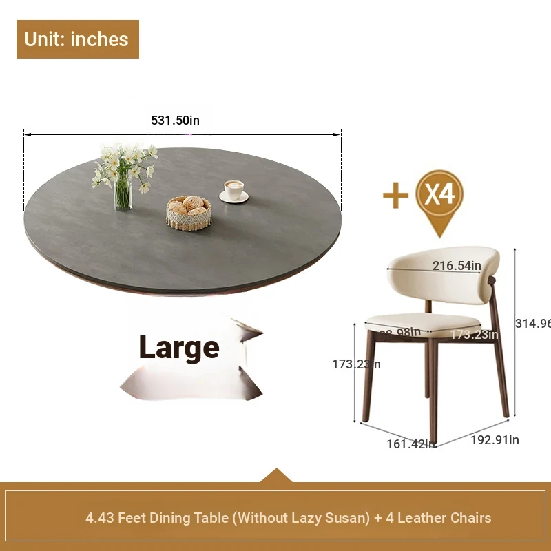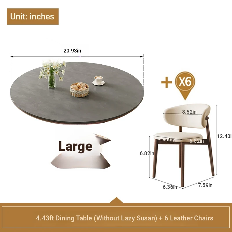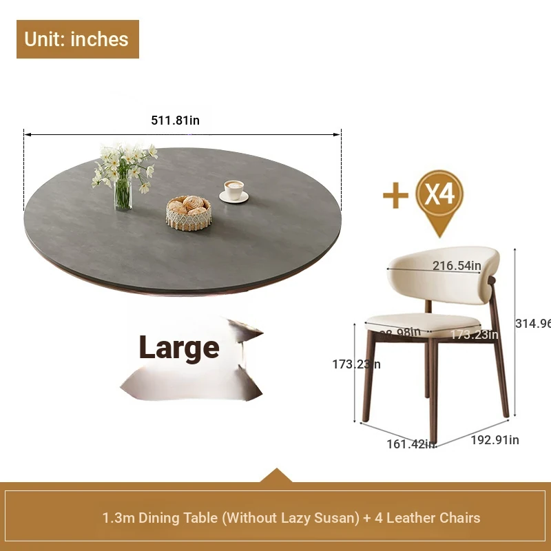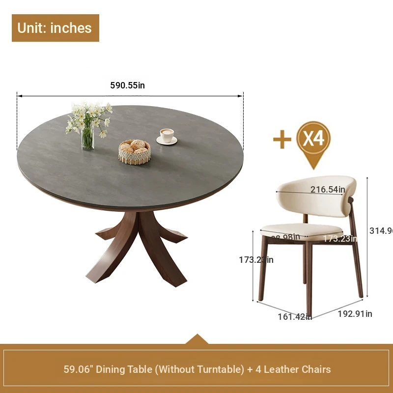 Ash Wood Solid Round Dining Table with Lazy Susan - Vintage Wabi-Sabi Style High-End Round Sintered Stone Table for Home with Full Support Base