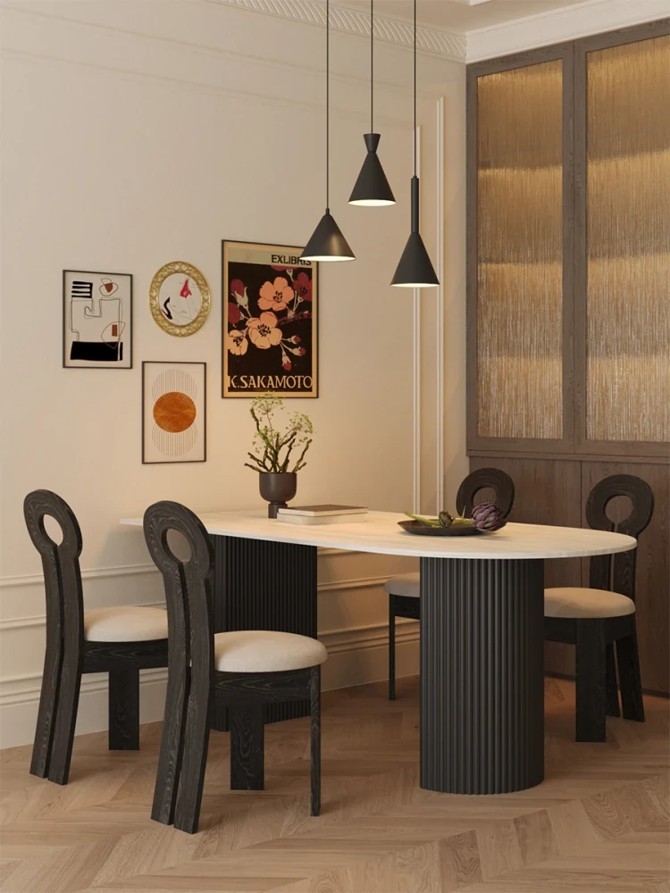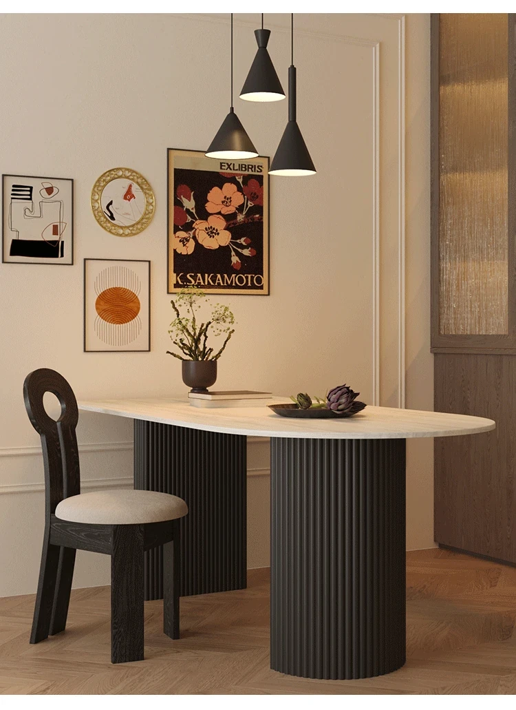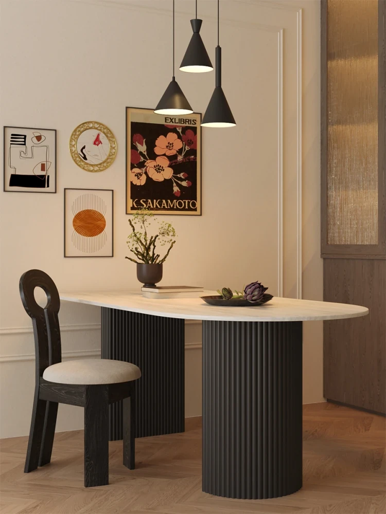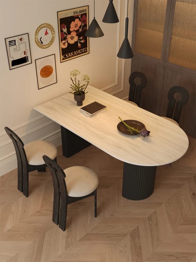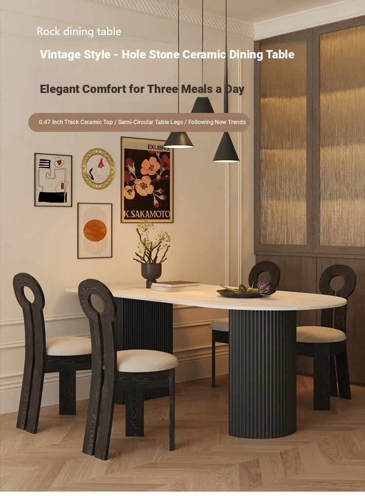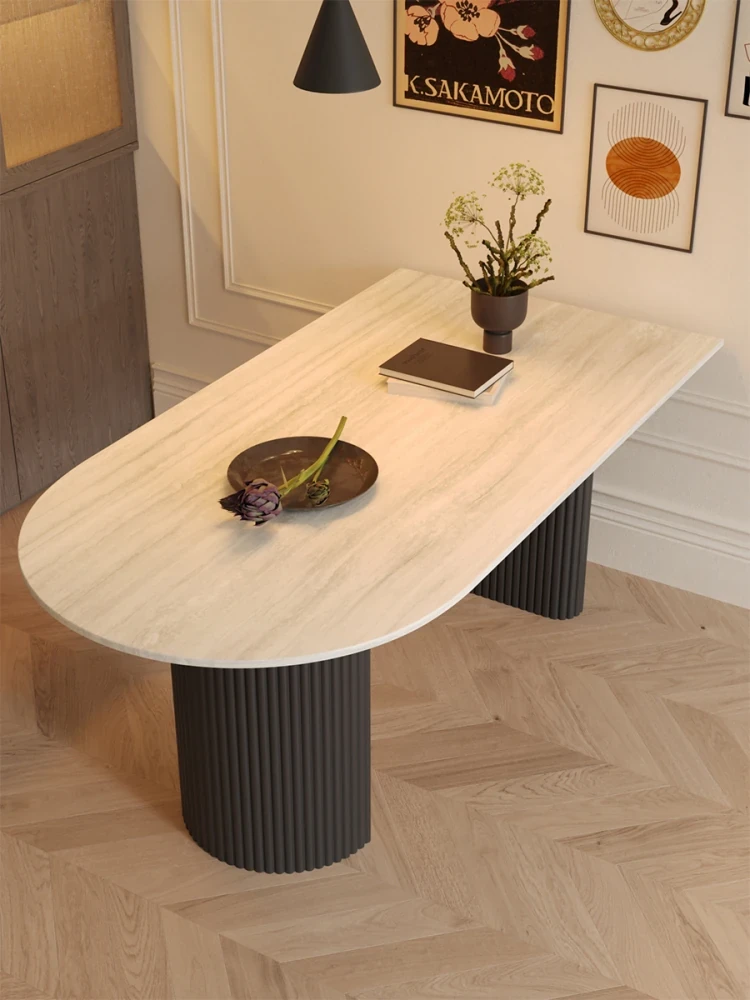 Vintage French Half-Round Dining Table with Stone-Look Surface - Perfect for Small Spaces, Embracing Wabi-Sabi Aesthetics for Stylish Conversations - New 2025 Collection