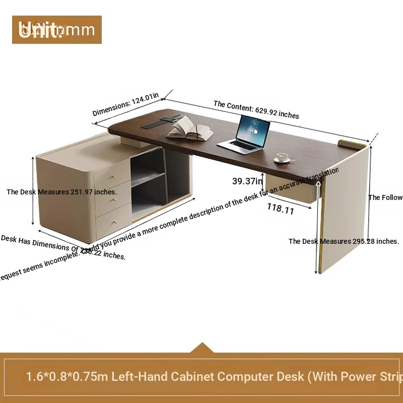 Left-hand long cabinet solid wood computer desk 62.99in*31.50in*29.53in (wireless charging socket)