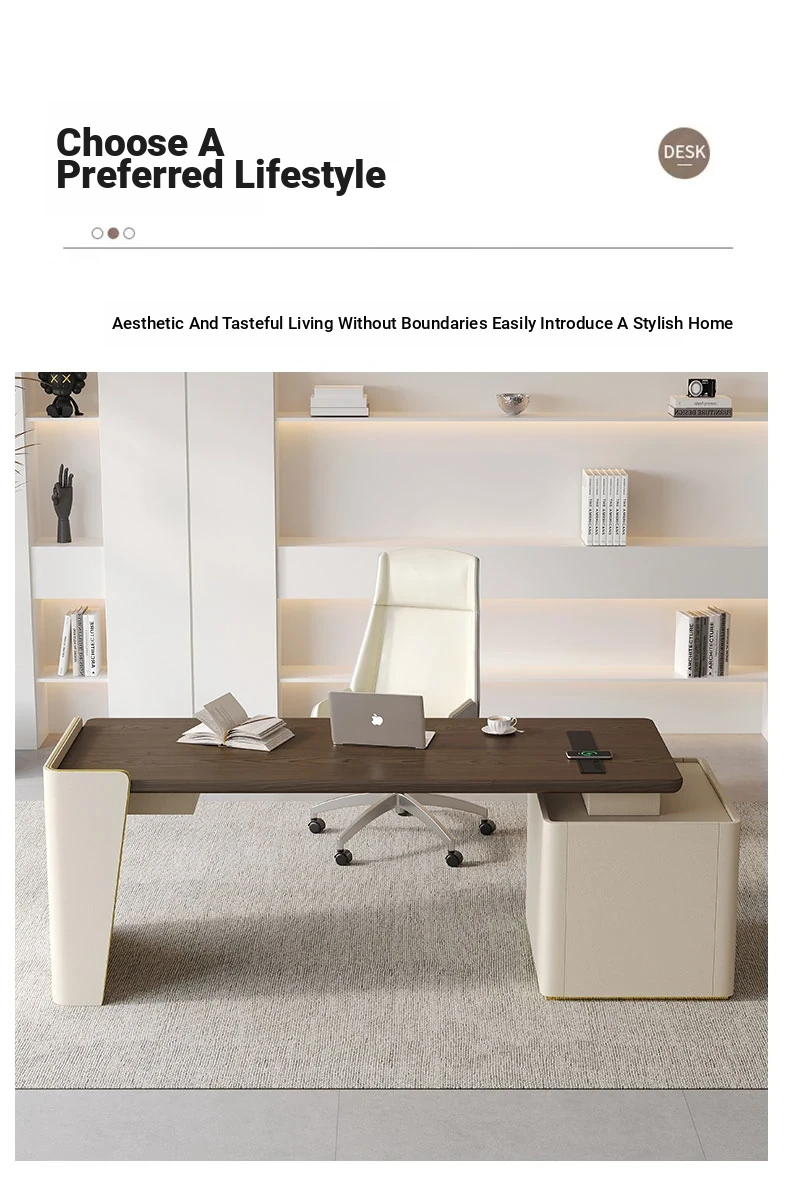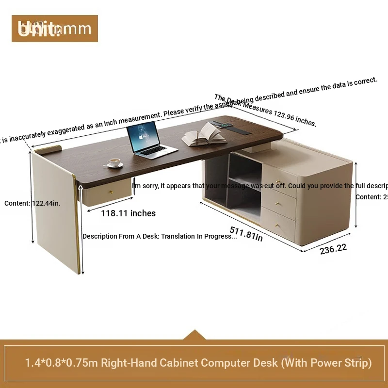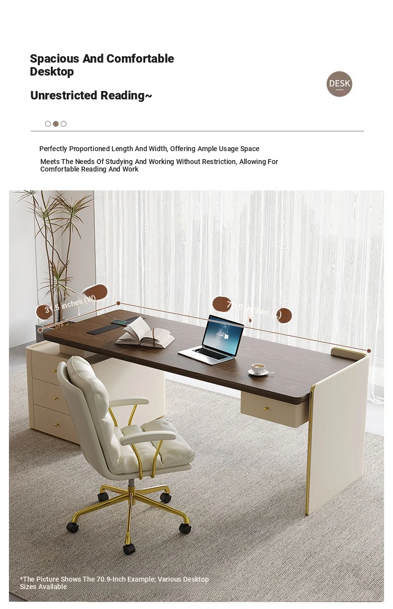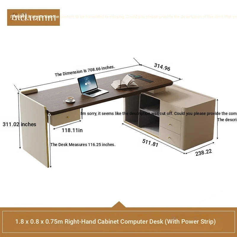 Right-hand long cabinet solid wood computer desk 70.87in*31.50in*29.53in (wireless charging socket)