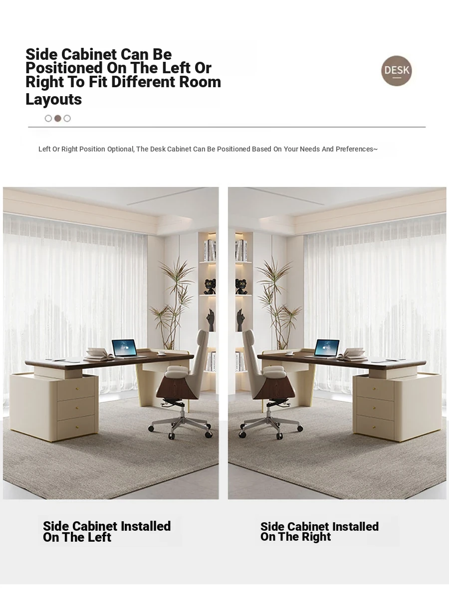 Right hand short cabinet solid wood desk 55.12in*31.50in*29.53in (wireless charging socket)