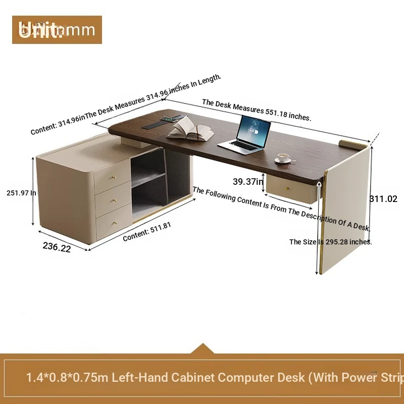 Left-hand long cabinet solid wood computer desk 70.87in*31.50in*29.53in (wireless charging socket)
