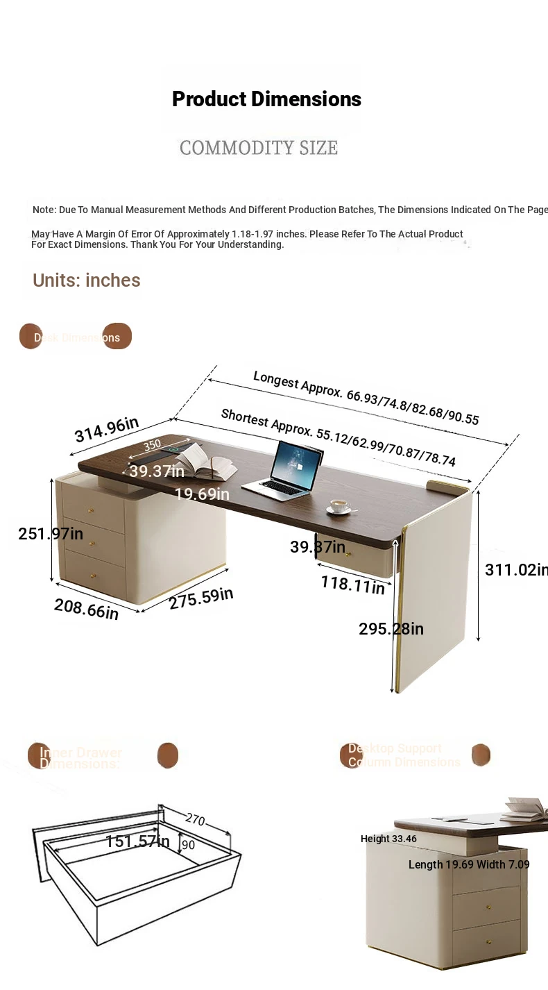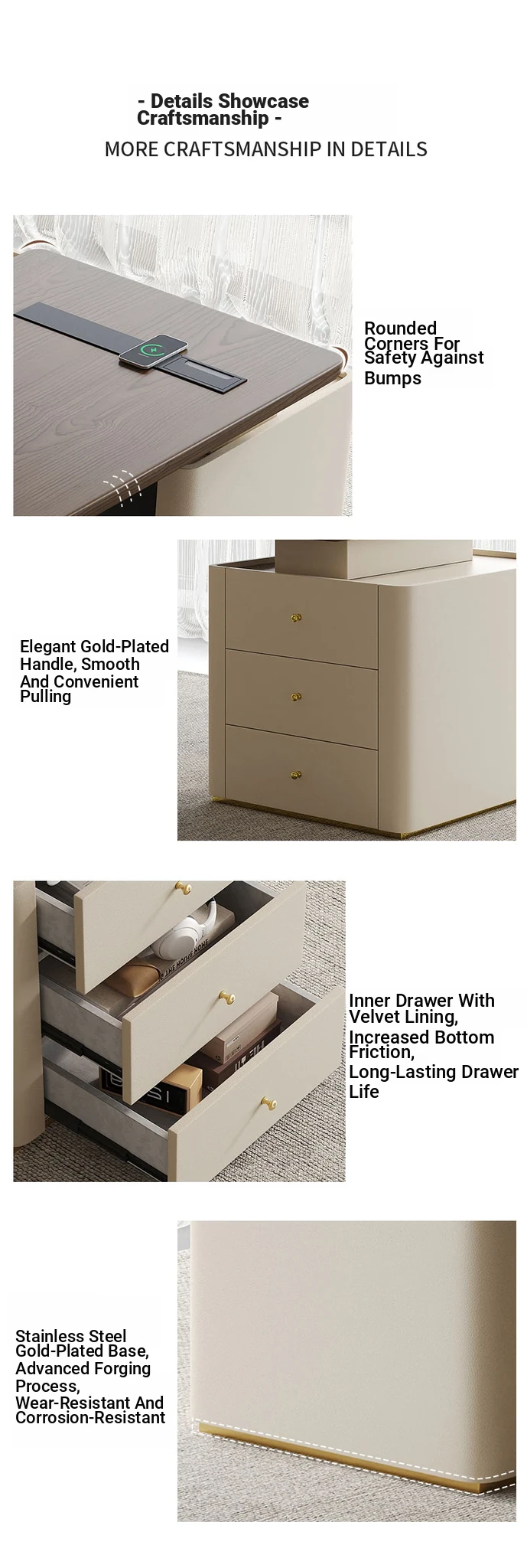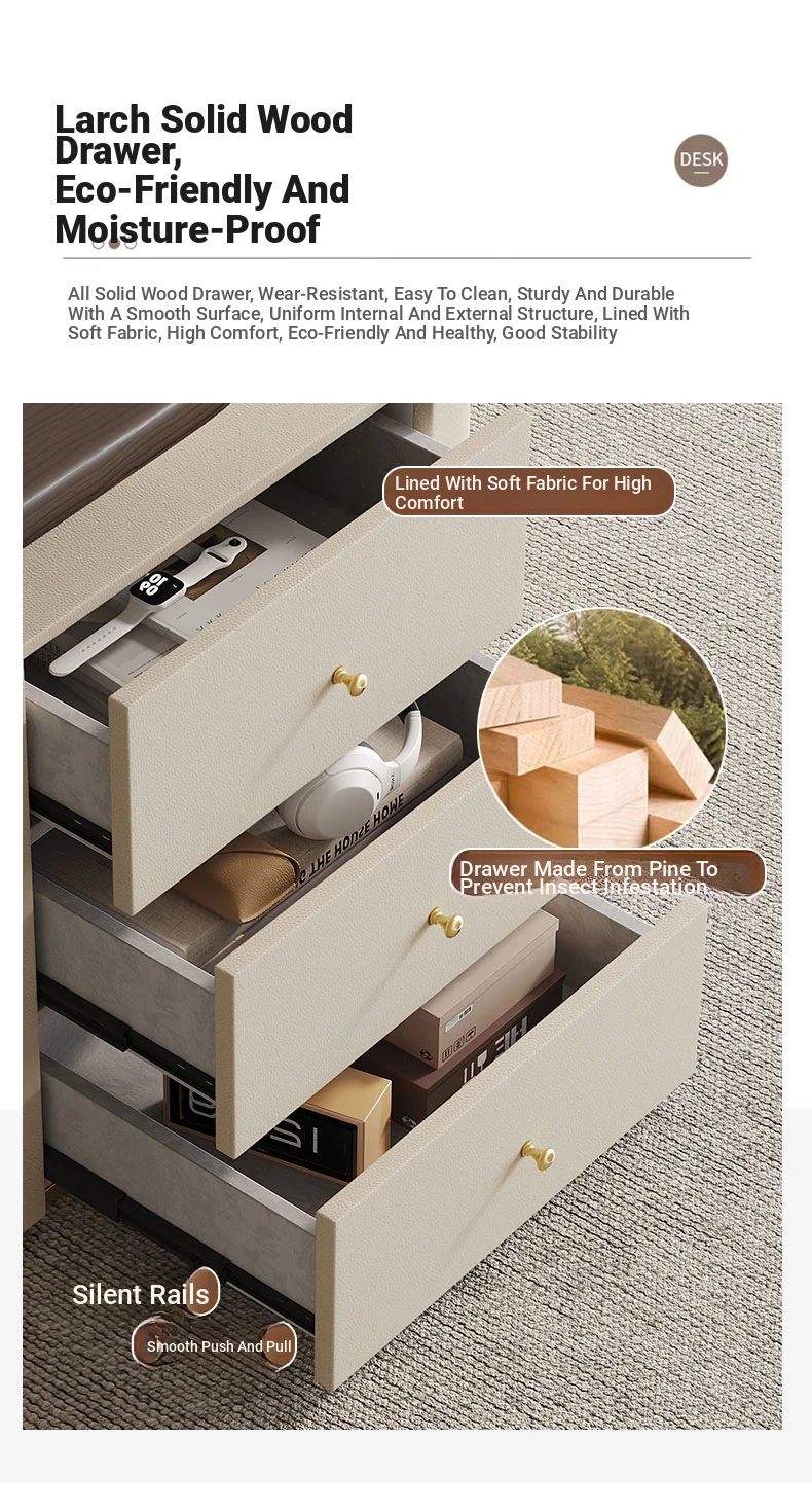 Left-hand short cabinet solid wood desk 78.74in*31.50in*29.53in (wireless charging socket)