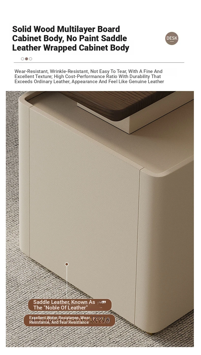 Left-hand short cabinet solid wood desk 55.12in*31.50in*29.53in (wireless charging socket)