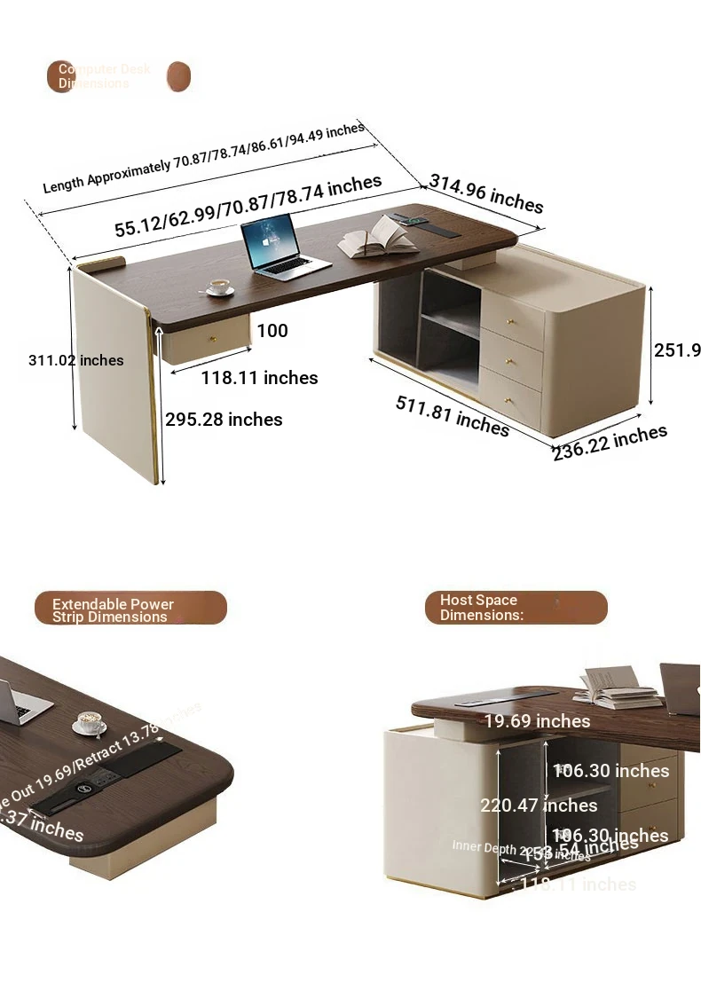 Right-hand long cabinet solid wood computer desk 78.74in*31.50in*29.53in (wireless charging socket)