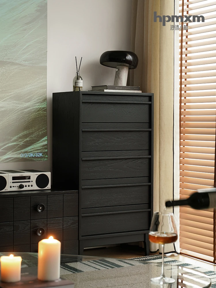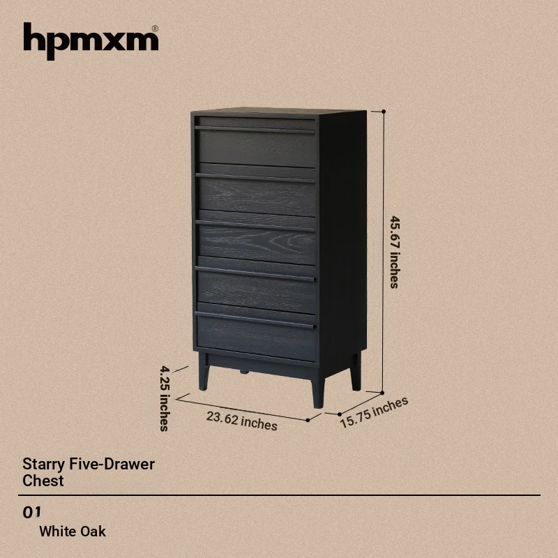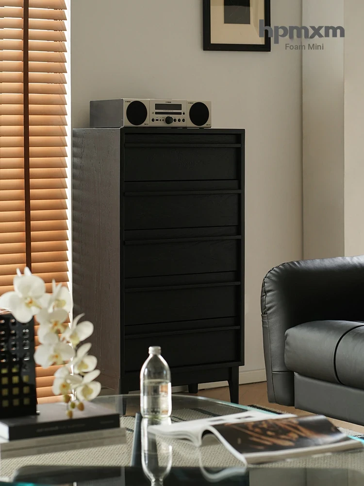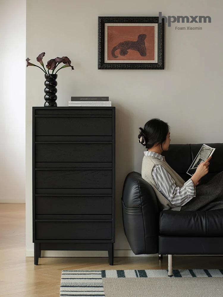 Vintage-Style Black 5-Drawer Chest - Space-Saving Solid Wood Dresser for Bedroom Storage